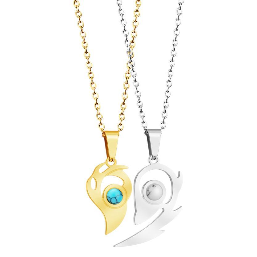 Edelstahl Puzzle Paar Halskette, Kugelkette & mit Brief Muster & mit Strass, originale Farbe, 45x25mm, Länge:ca. 23.6 ZollInch, 2SträngeStrang/setzen, verkauft von setzen