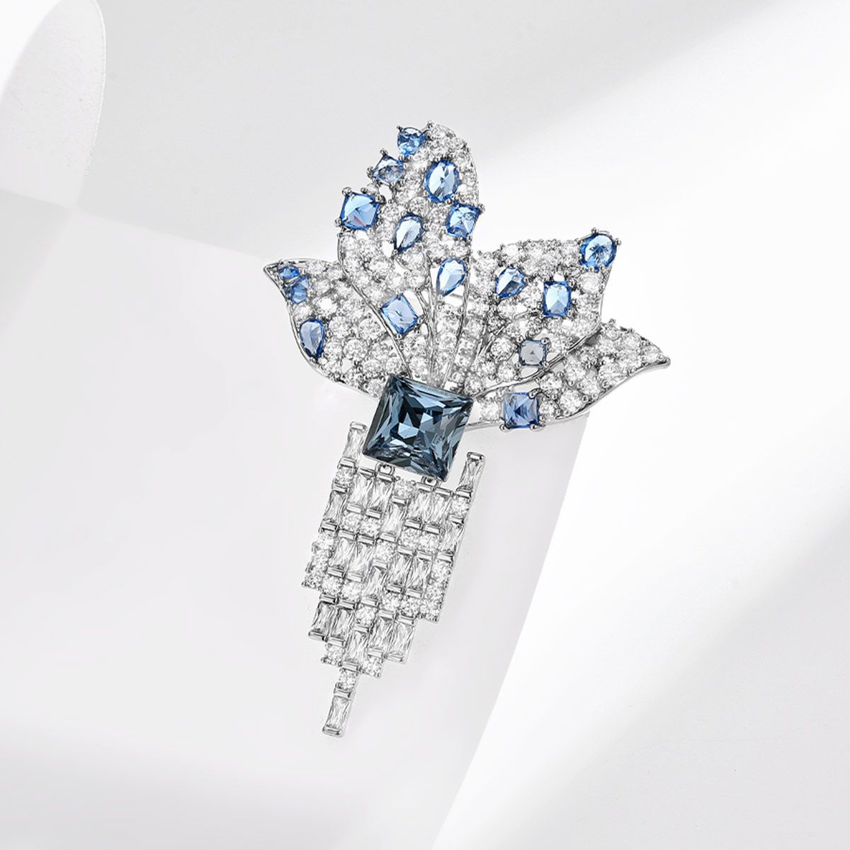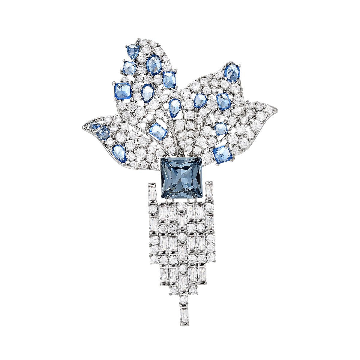 Kristallbrosche, Zinklegierung, Blume, Platinfarbe platiniert, für Frau & mit Strass, frei von Blei & Kadmium, 61x30mm, verkauft von PC