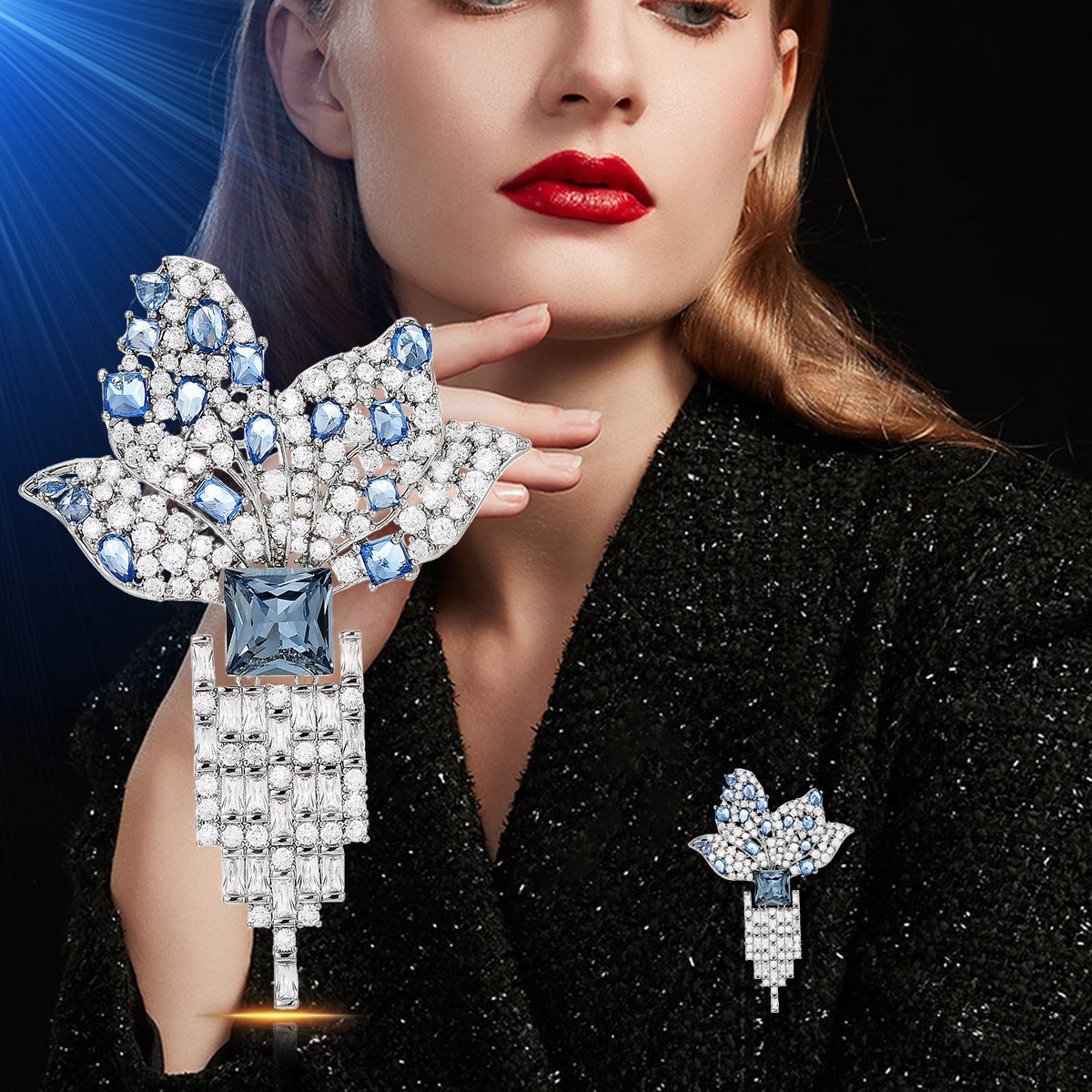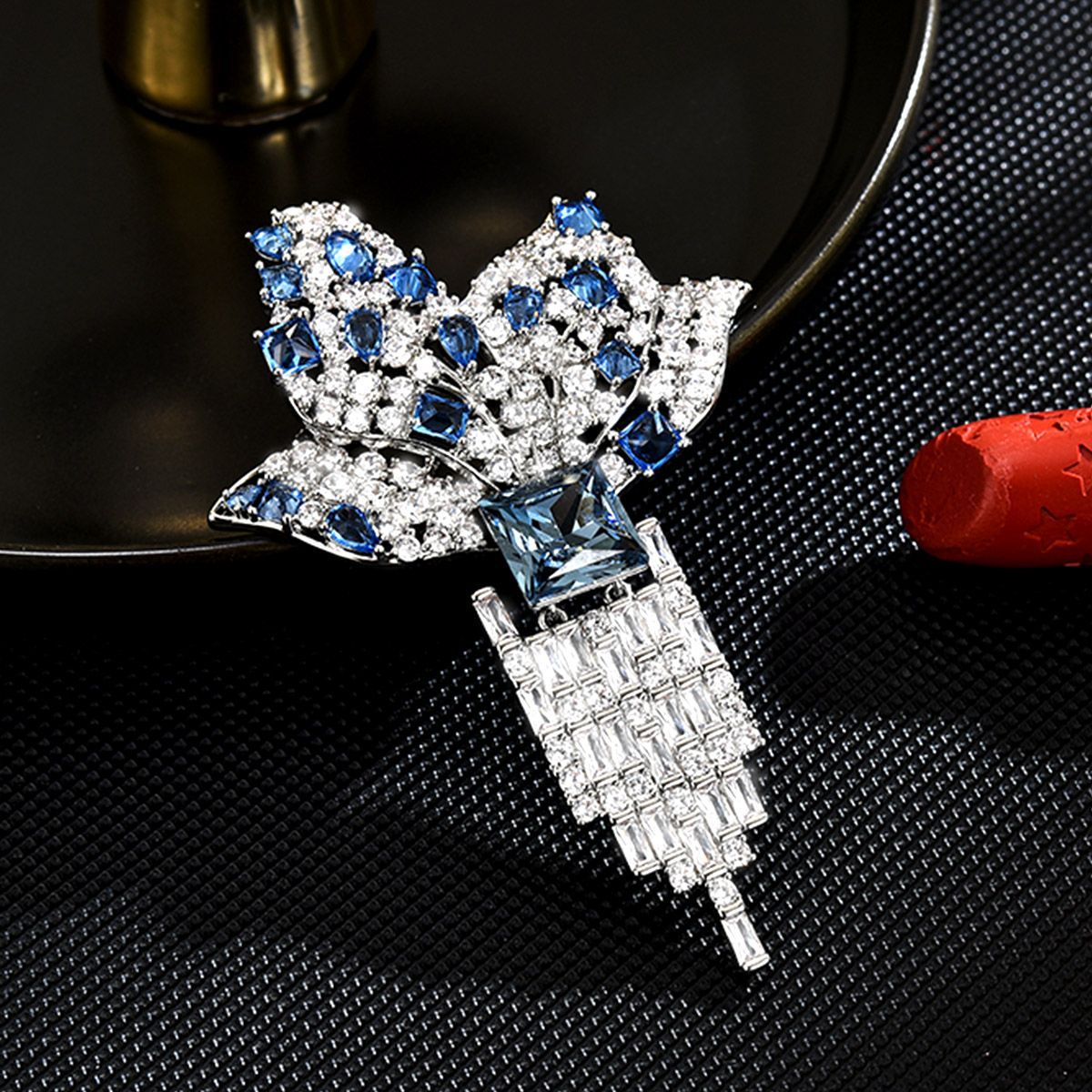 Kristallbrosche, Messing, mit Österreichischer Kristall, plattiert, Micro pave Zirkonia & für Frau, Silberfarbe, 67x46mm, verkauft von PC