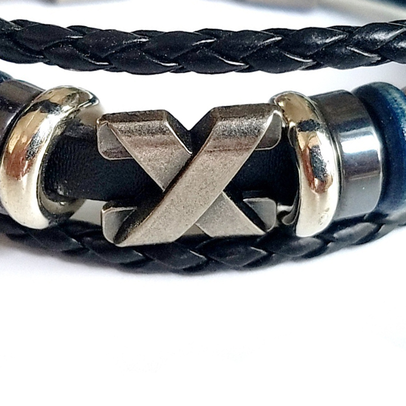 Rindsleder-Armbänder, Kuhhaut, mit Zinklegierung, 2 strängig, schwarz, 14x14x9mm, 12mm, Länge:8 ZollInch, verkauft von Strang