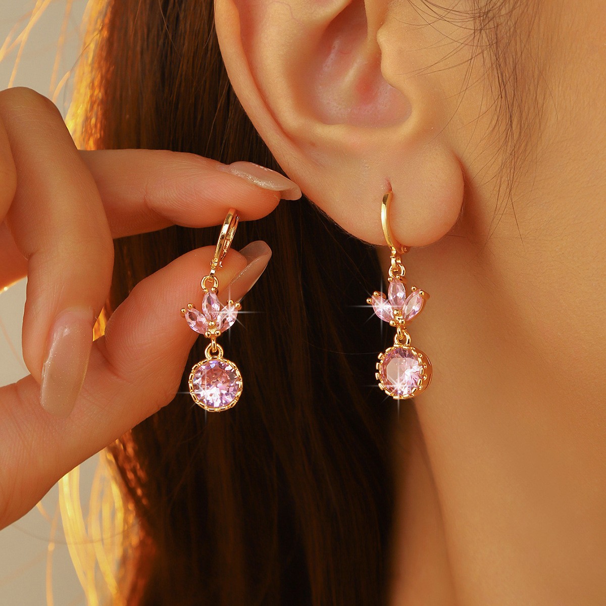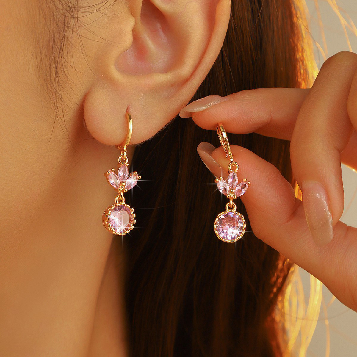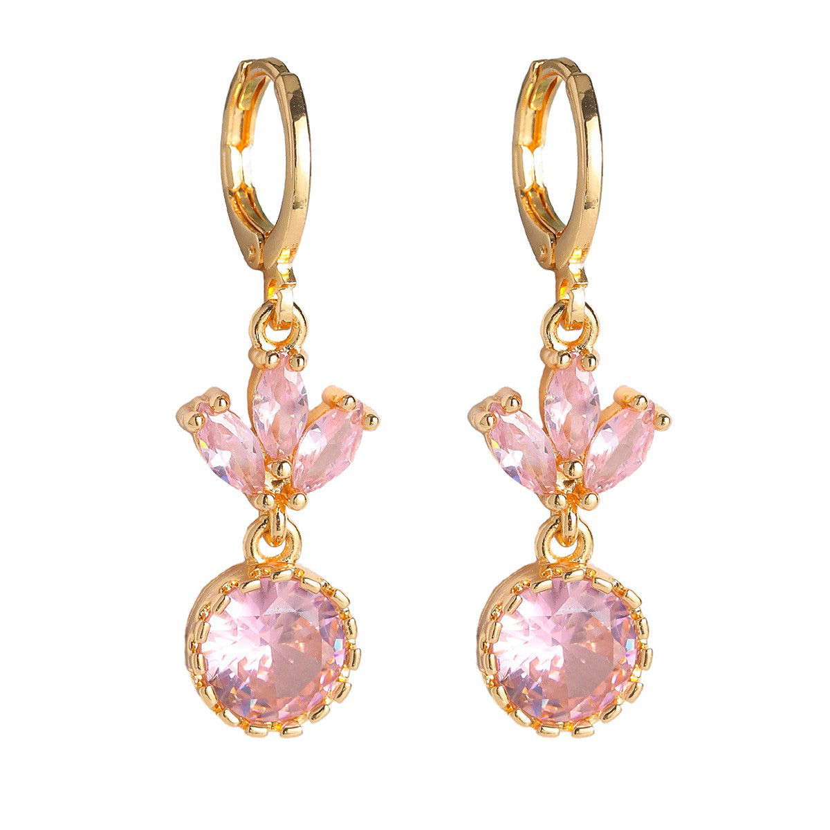 Messing Tropfen Ohrring, mit kubischer Zirkonia, Modeschmuck & für Frau, Rosa, verkauft von PC