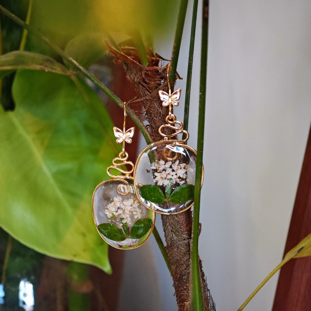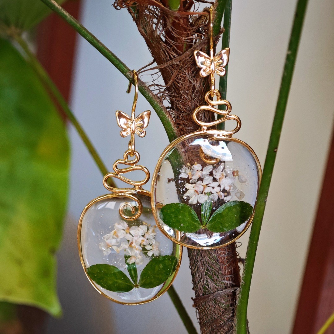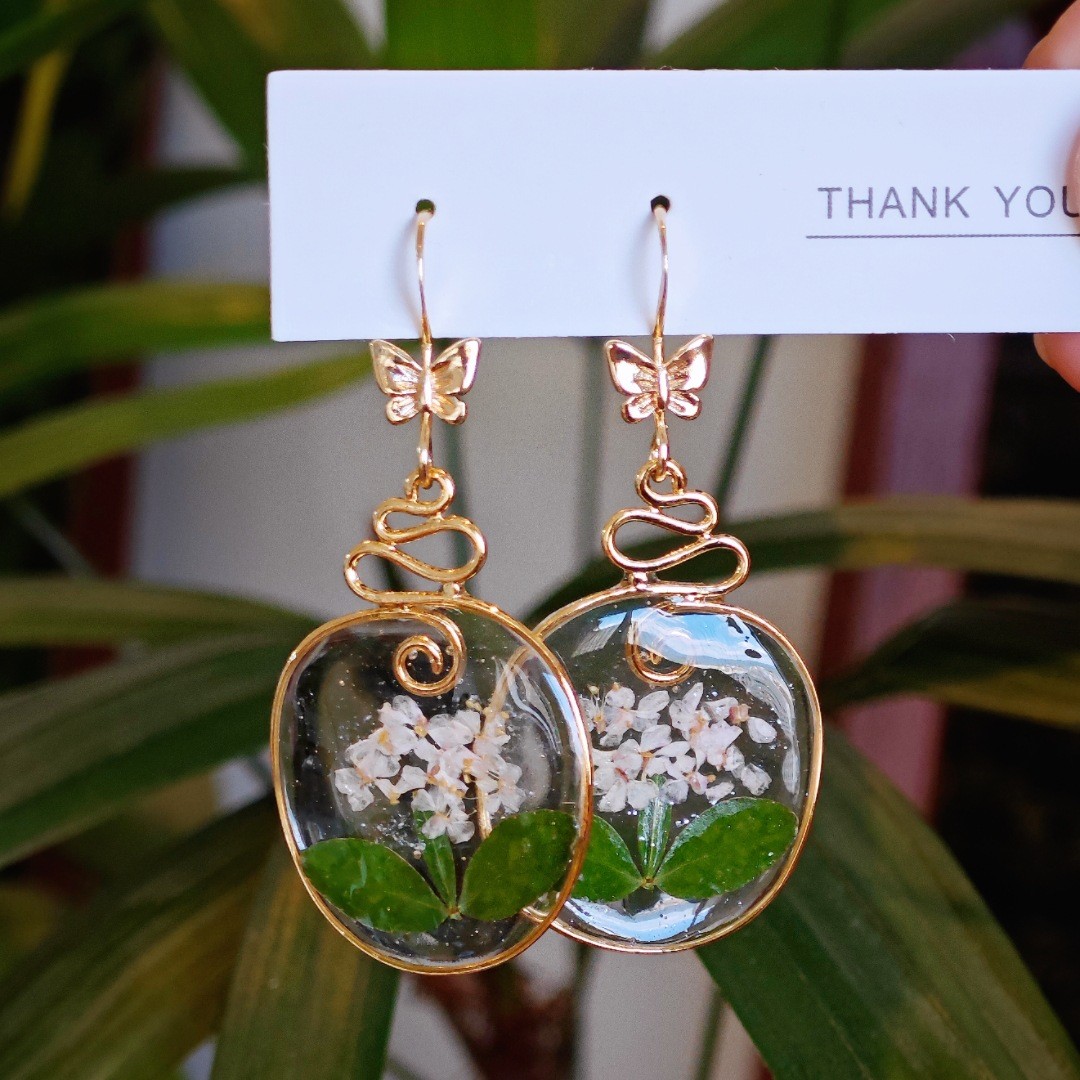 Messing Tropfen Ohrring, mit Getrocknete Blumen & Harz, Modeschmuck & für Frau, verkauft von Paar