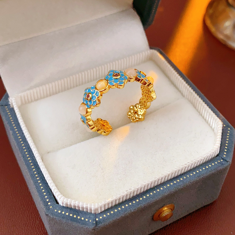 Messing Fingerring, Blume, plattiert, einstellbar, keine, 16x5mm, Größe:4, verkauft von PC