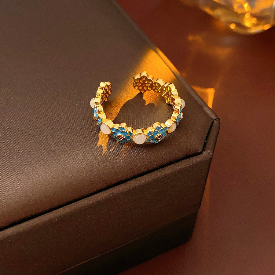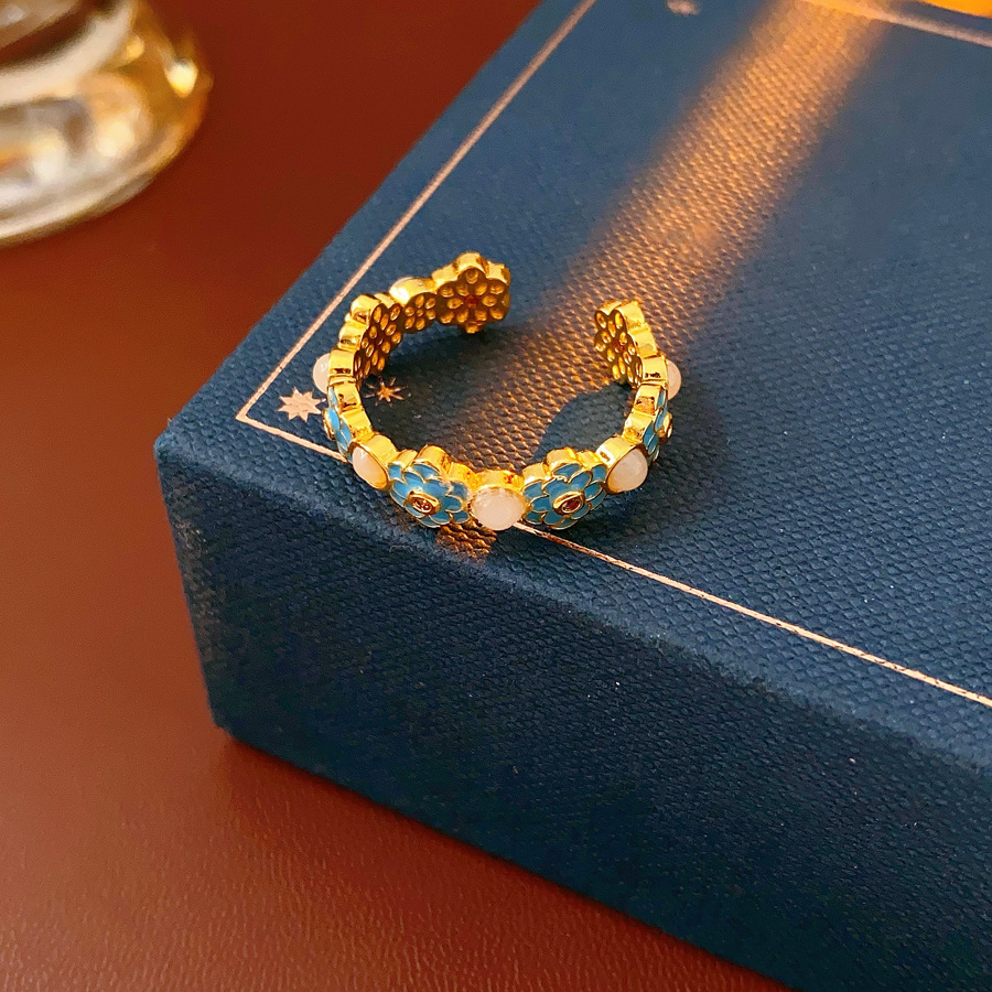 Messing Manschette Fingerring, mit Harz, Blume, goldfarben plattiert, für Frau & Emaille, Größe:6-8, verkauft von PC
