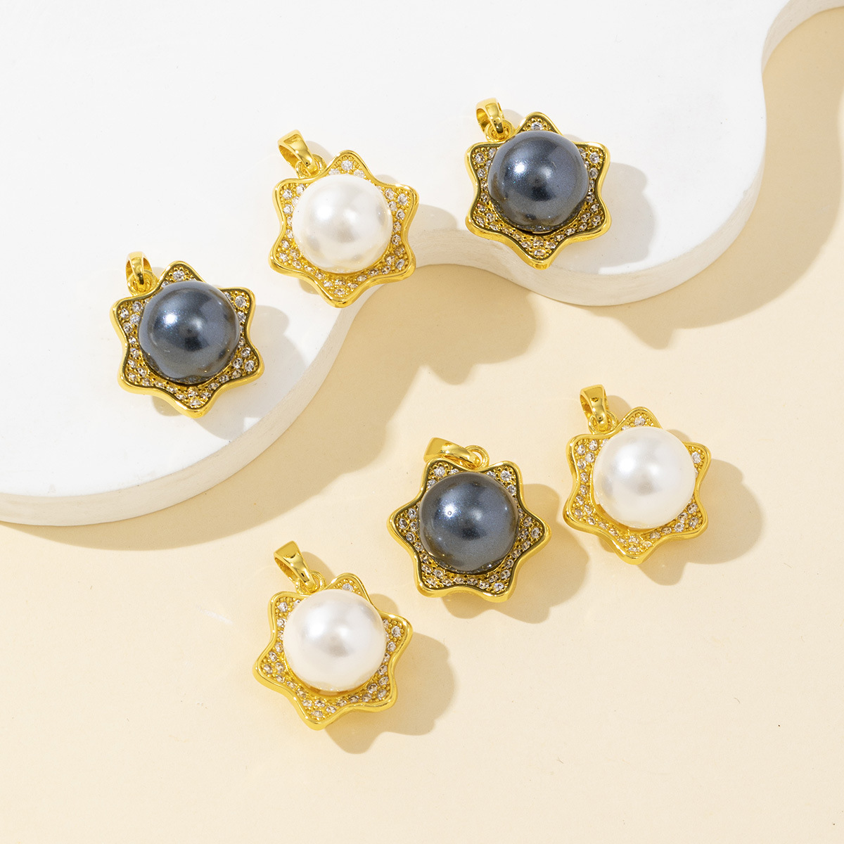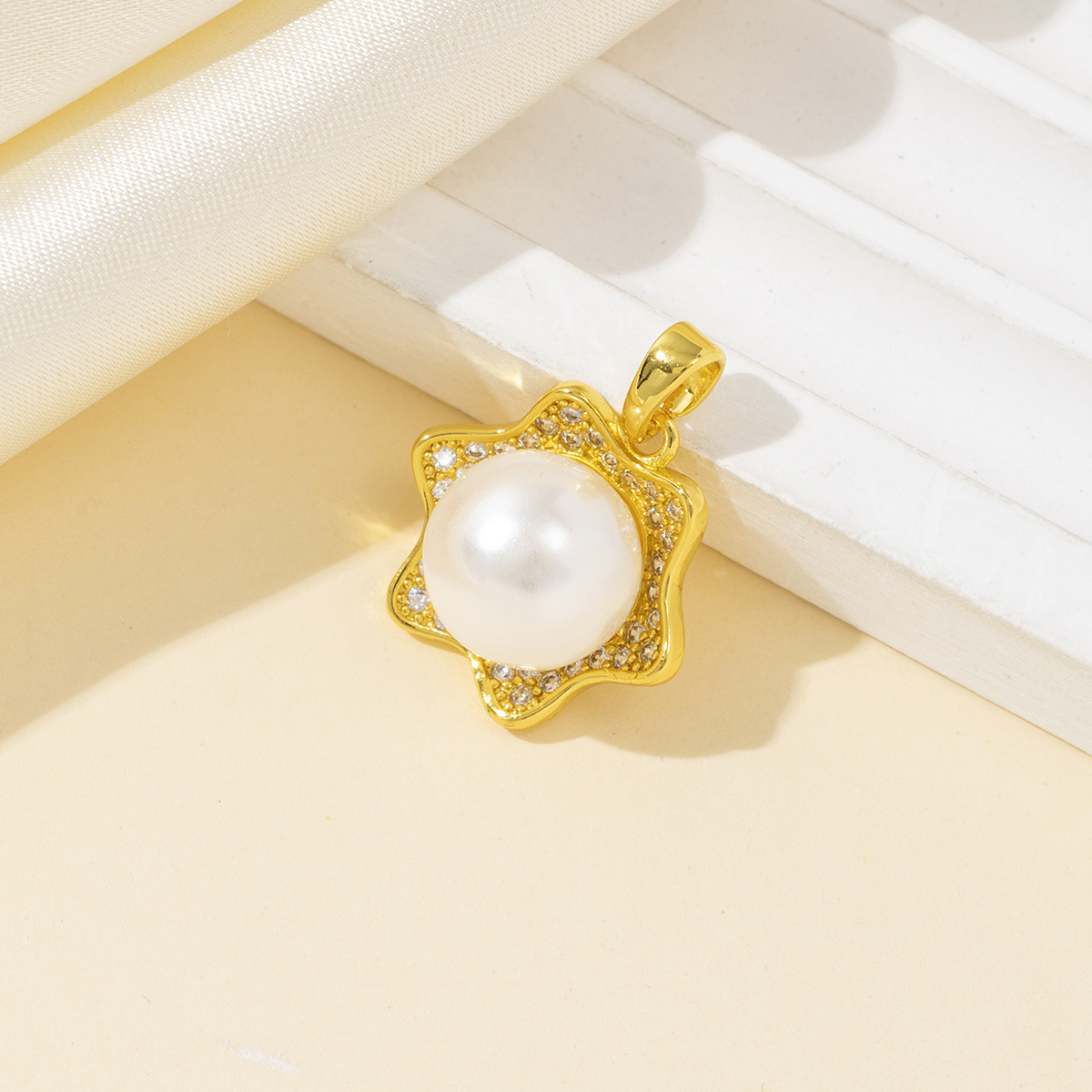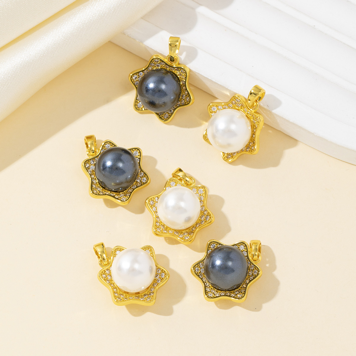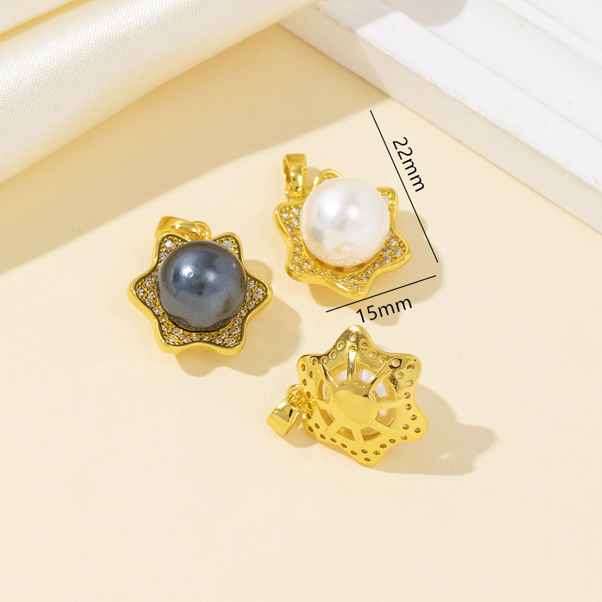 Messing Anhänger, mit Muschelkern, Blume, DIY & mit Strass, keine, verkauft von PC
