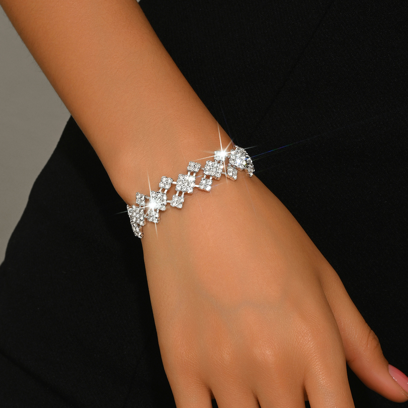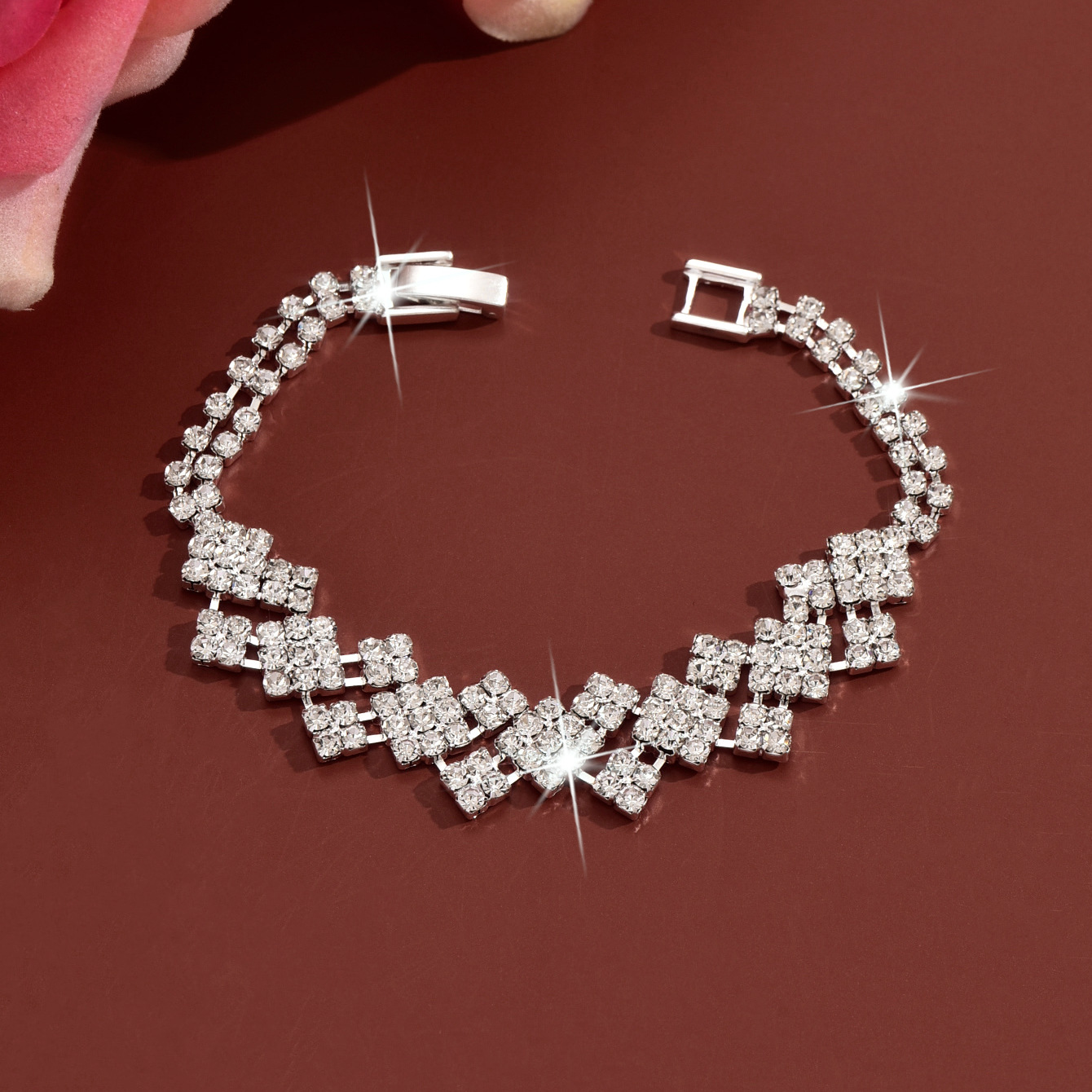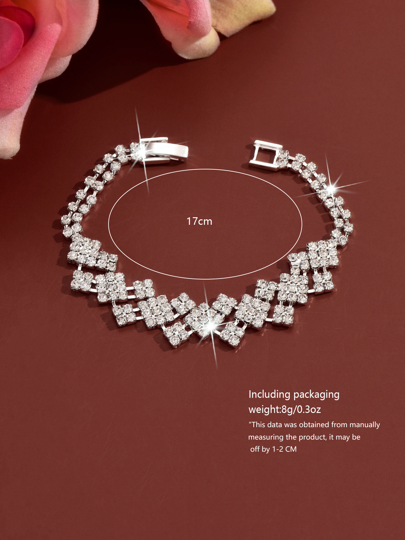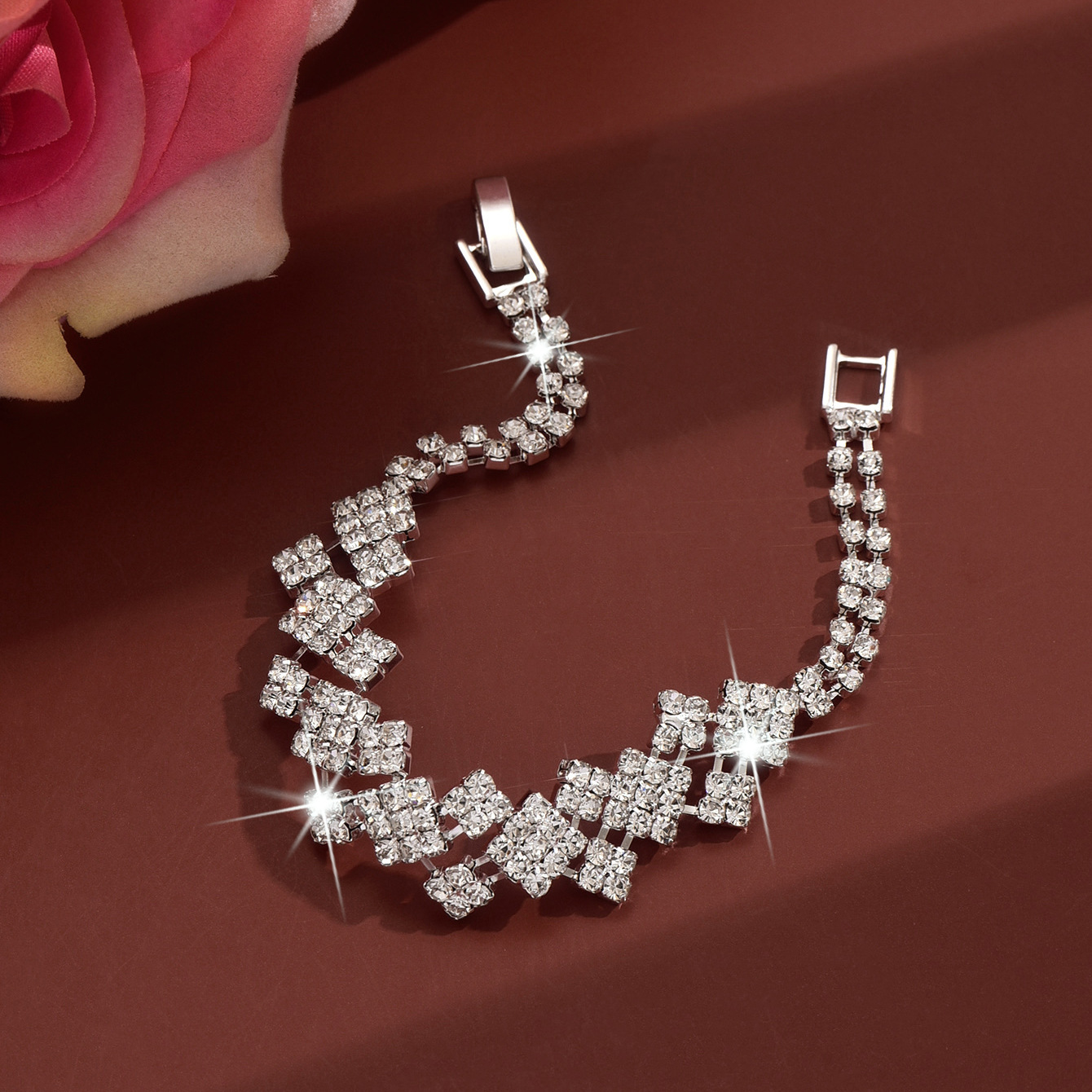 Messing Armband, Geometrisches Muster, silberfarben plattiert, für Frau & mit Strass, Länge:ca. 6.7 ZollInch, verkauft von PC