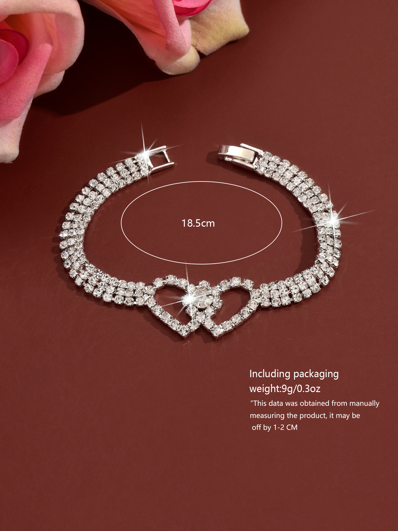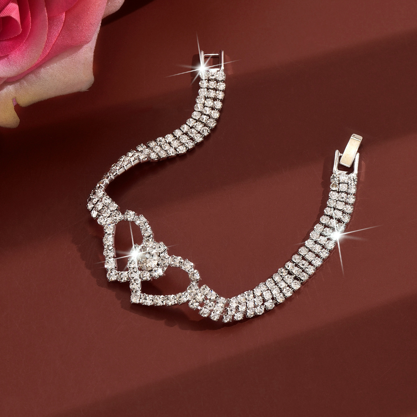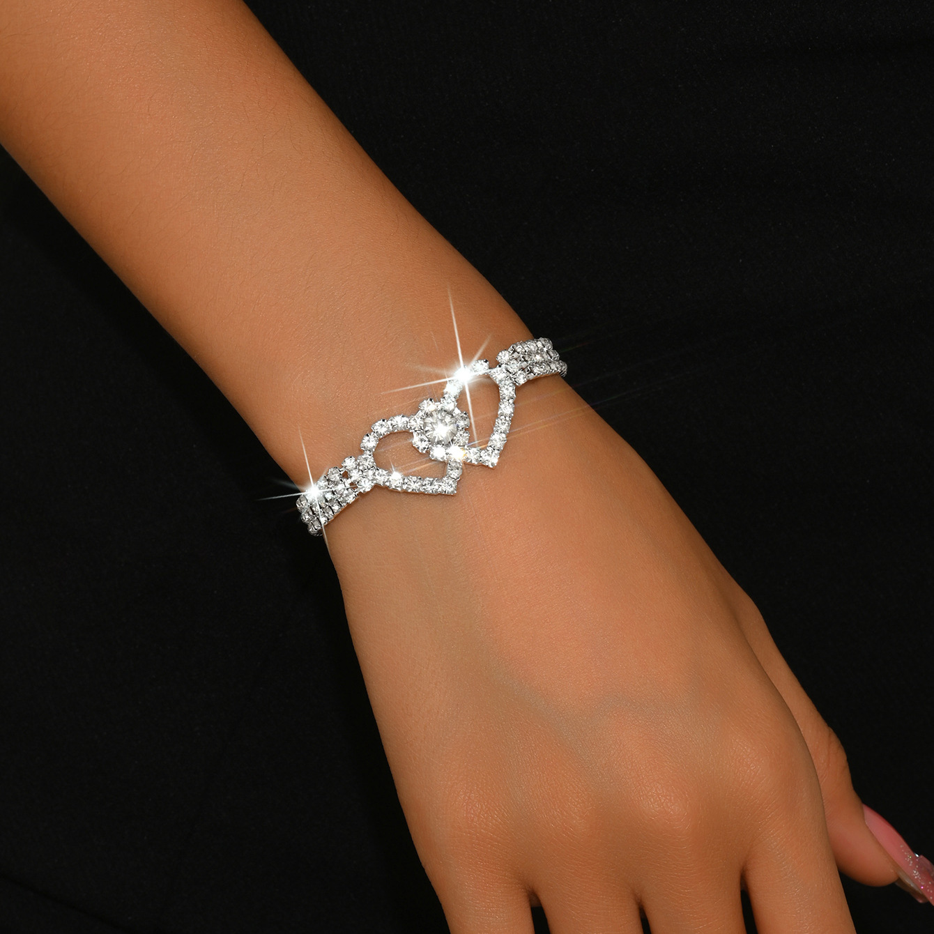 Strass Messing Armbänder, Herz, silberfarben plattiert, mit Strass, 17x11mm, Länge:6 ZollInch, verkauft von Strang