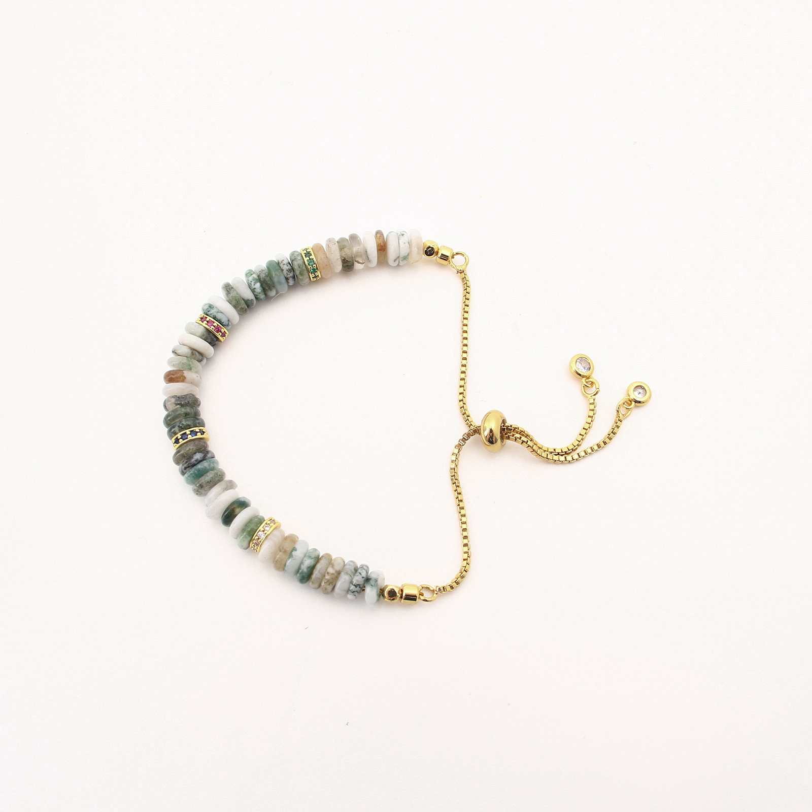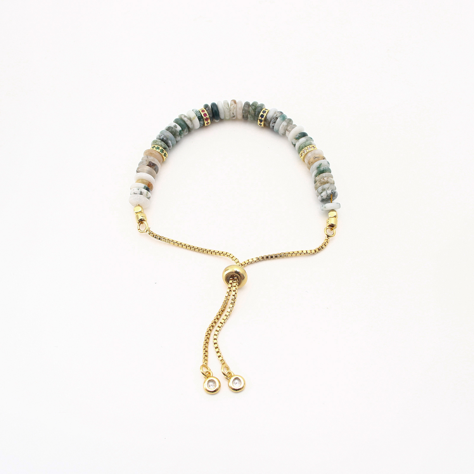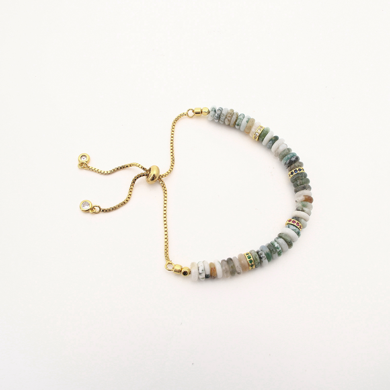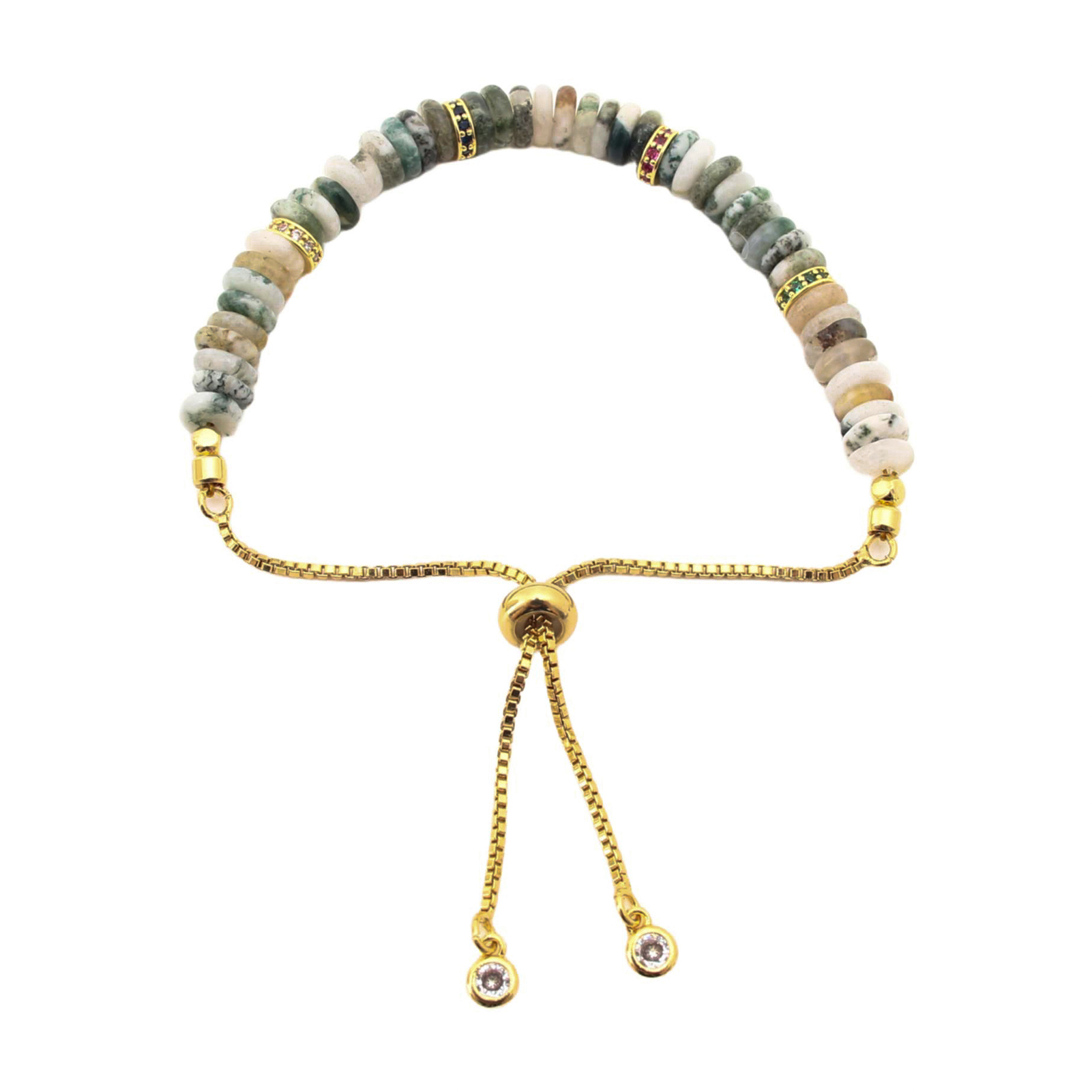 Messing Armband, mit Amazonit, Modeschmuck & unisex & Micro pave Zirkonia, goldfarben, verkauft von PC
