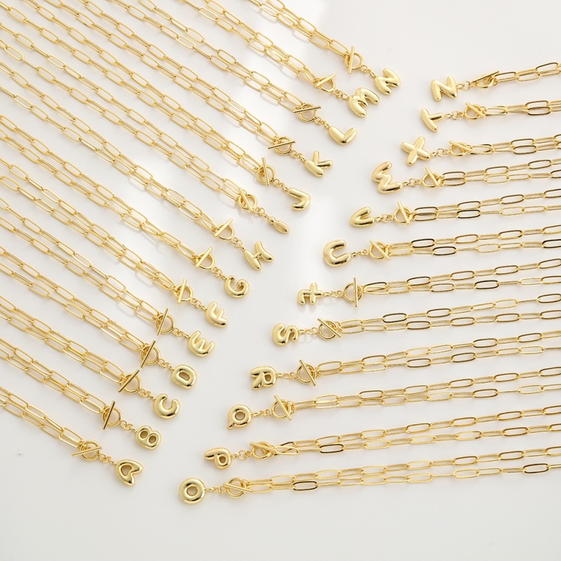 Messing Halskette, Alphabet-Buchstabe, goldfarben plattiert, verschiedene Stile für Wahl & für Frau, Länge:ca. 19.7 ZollInch, verkauft von PC
