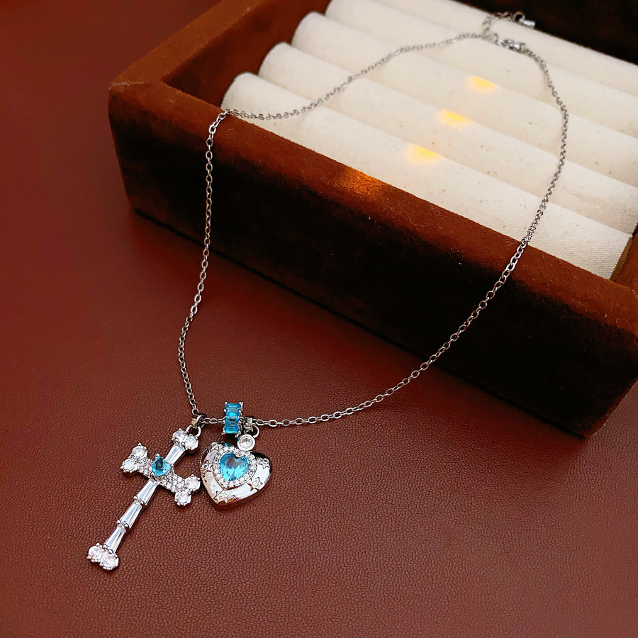 Messing Halskette, mit Verlängerungskettchen von 3inch, Kreuz, silberfarben plattiert, Micro pave Zirkonia & für Frau, Länge:ca. 15.7 ZollInch, verkauft von PC