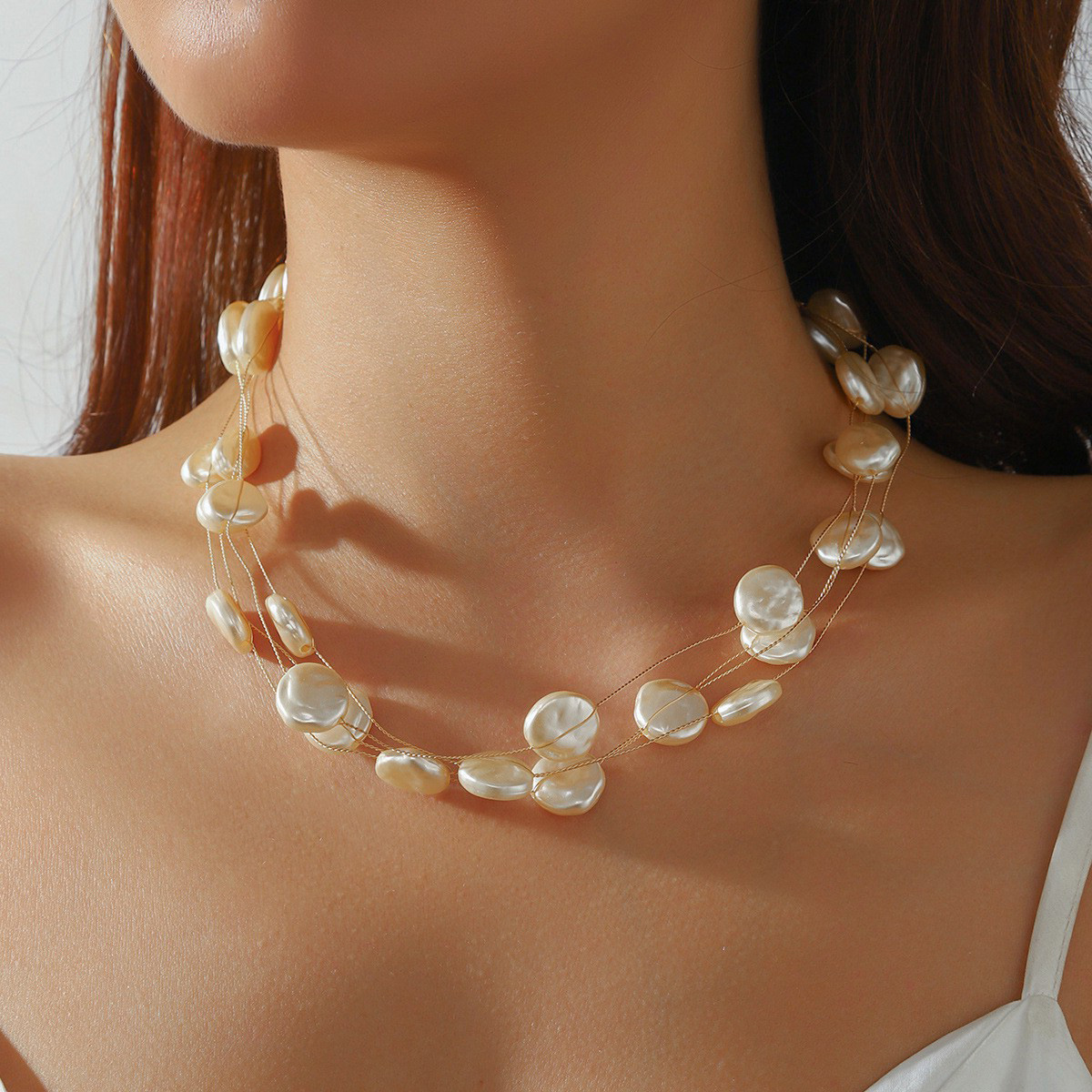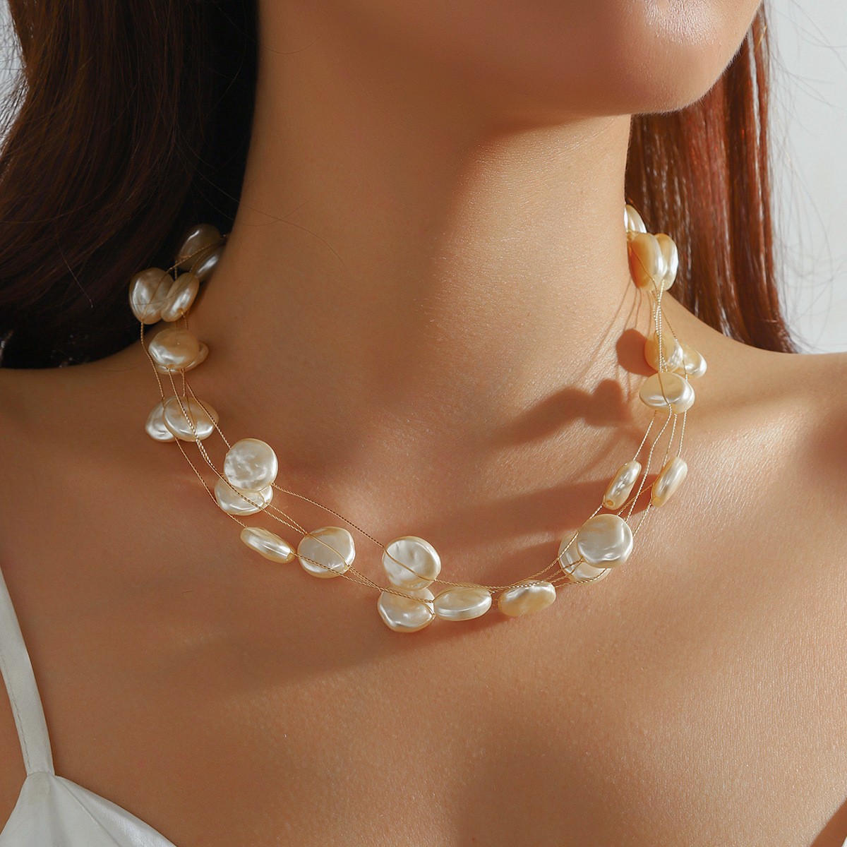 Messing Halskette, mit ABS-Kunststoff-Perlen, plattiert, Modeschmuck & für Frau, verkauft von PC