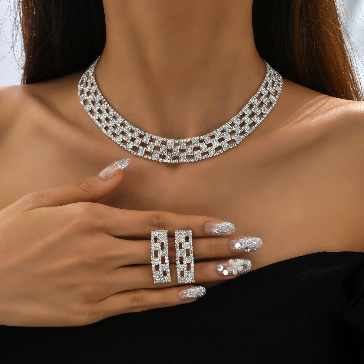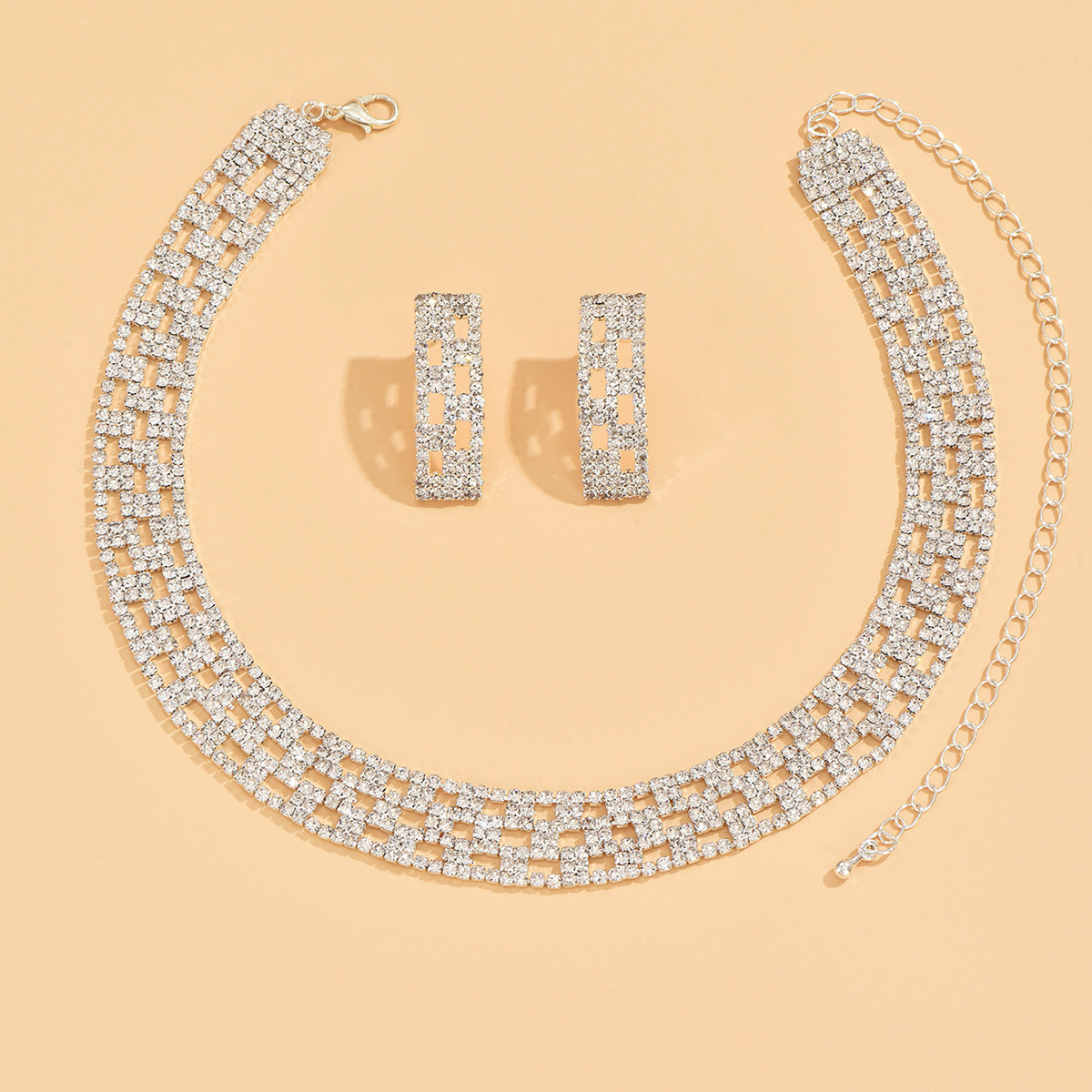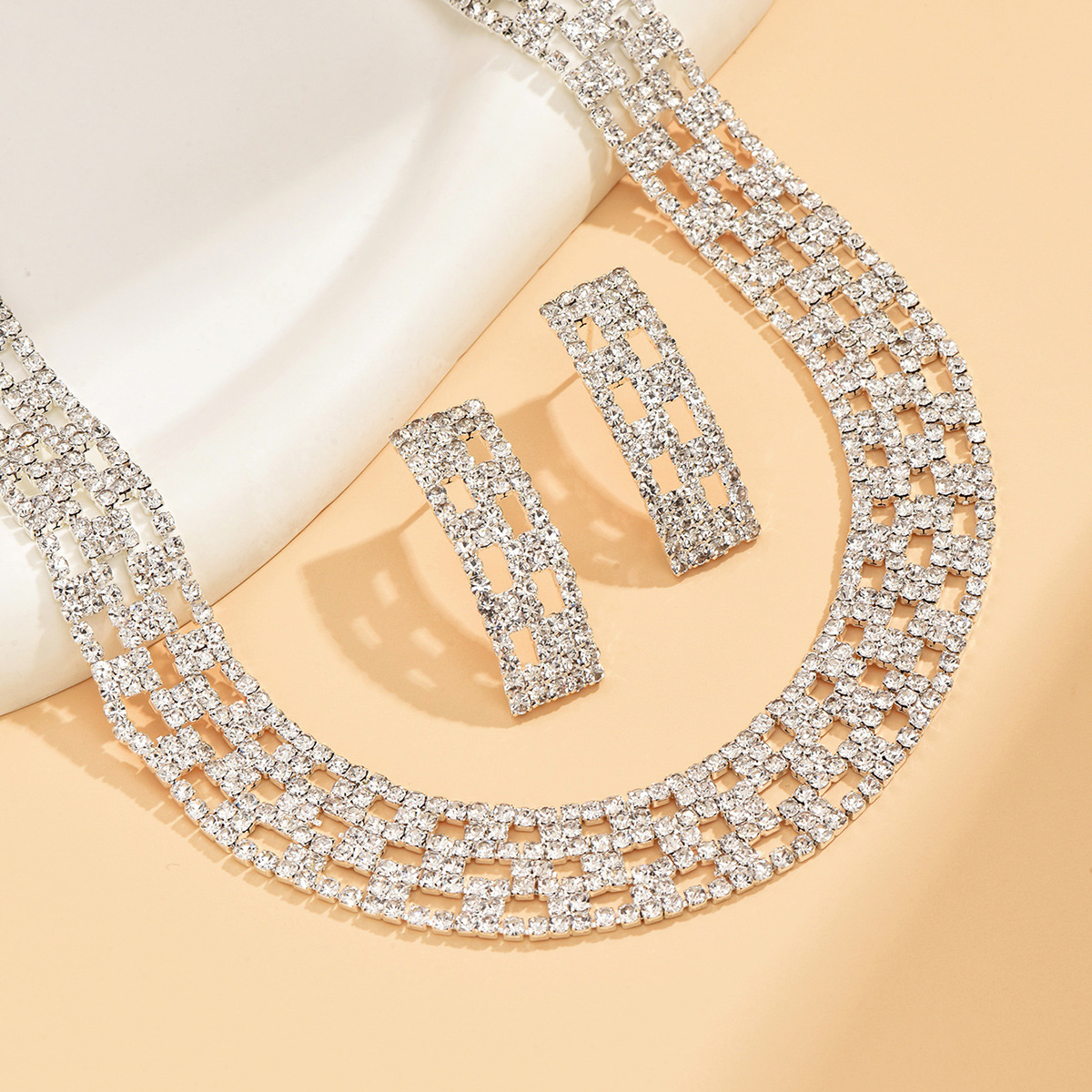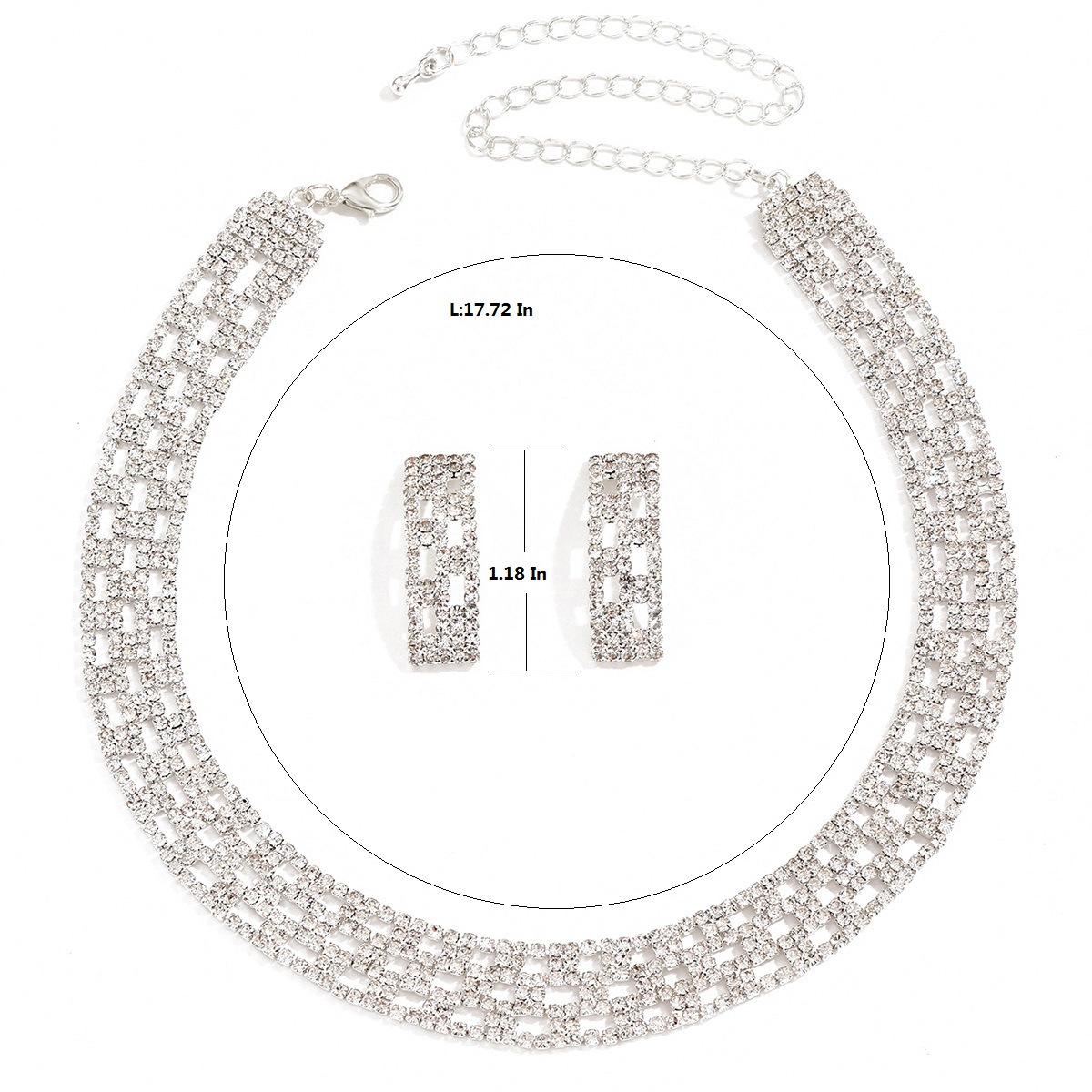 Messing Mode Schmuckset, Ohrring & Halskette, silberfarben plattiert, 2 Stück & für Frau & mit Strass, verkauft von setzen