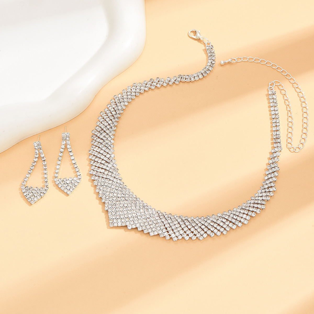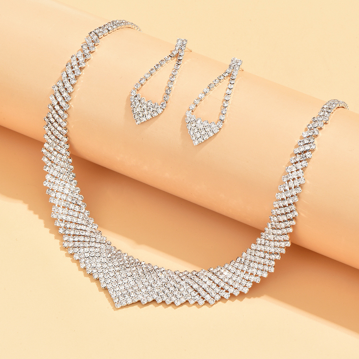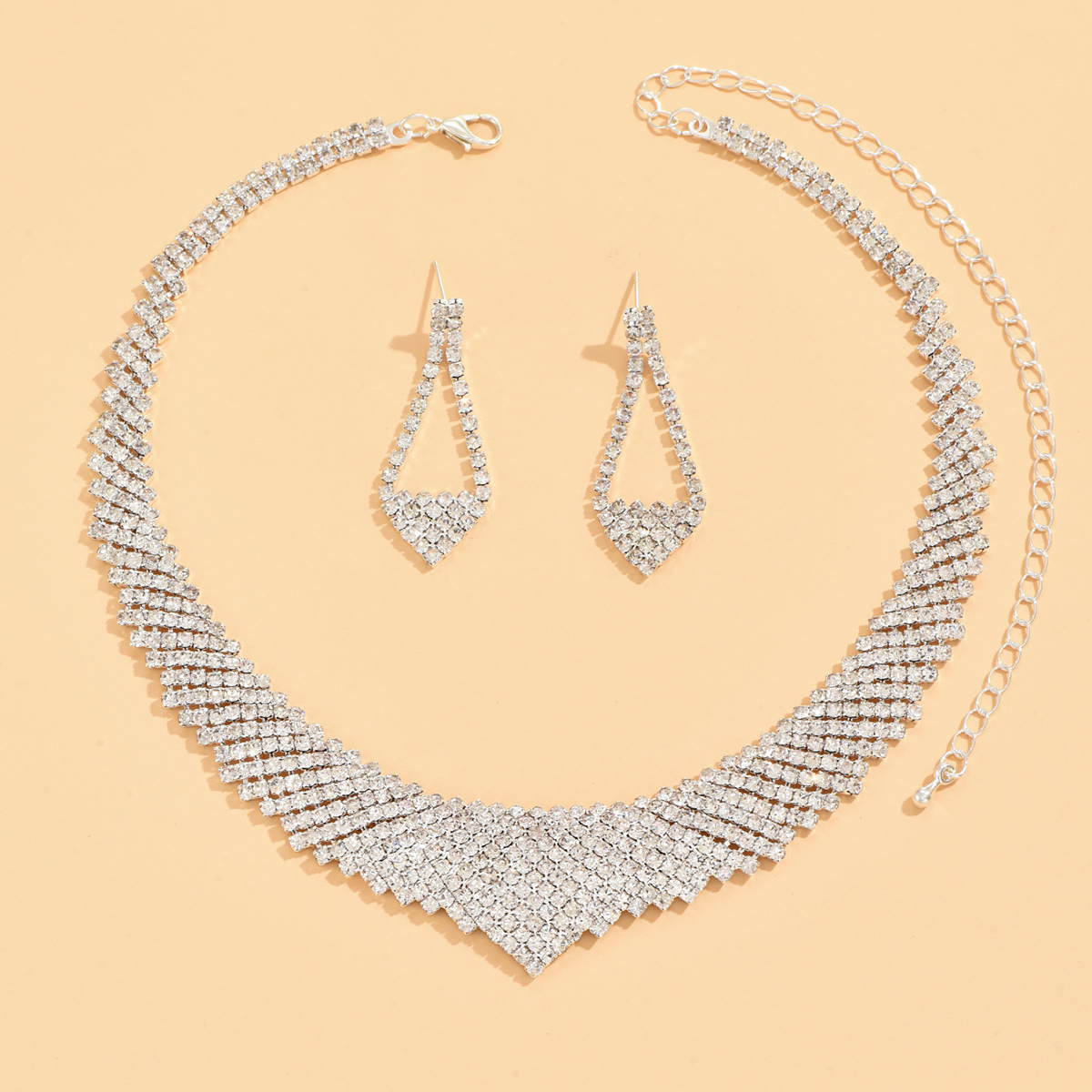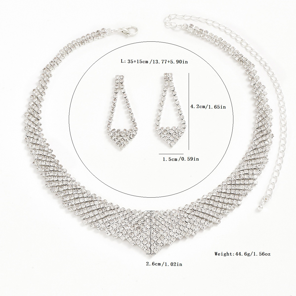 Messing Mode Schmuckset, Ohrring & Halskette, silberfarben plattiert, 2 Stück & für Frau & mit Strass, verkauft von setzen
