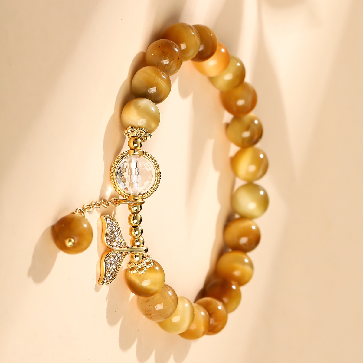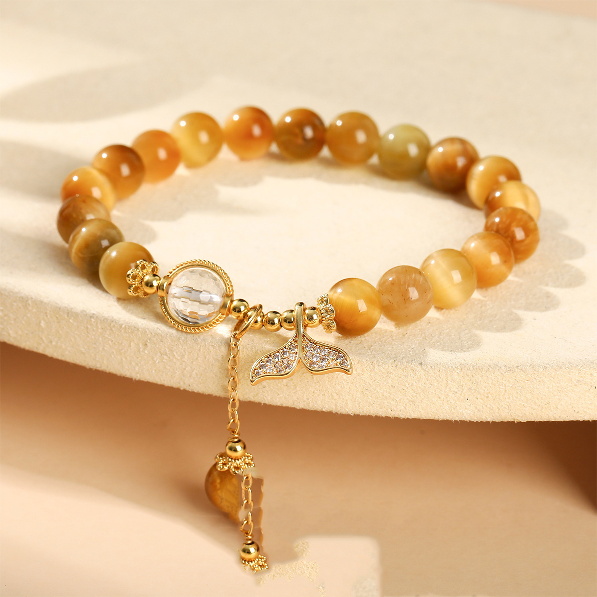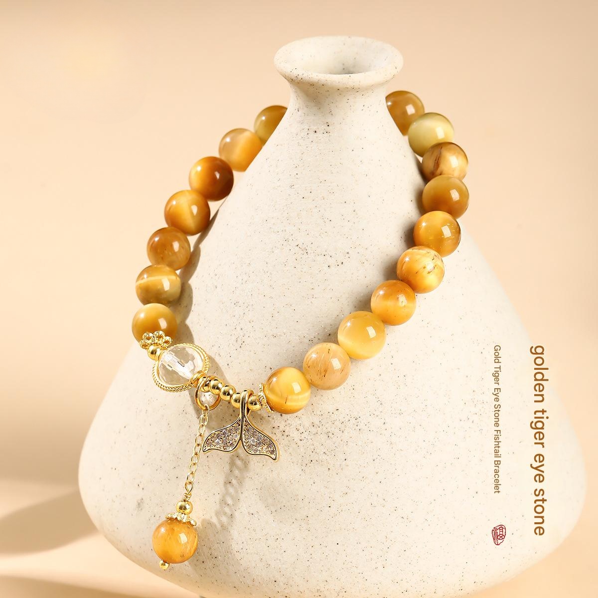 Tigerauge Armband, mit Rutilated Quarz & Messing, Modeschmuck & mit Strass, goldfarben, 8mm, verkauft von PC