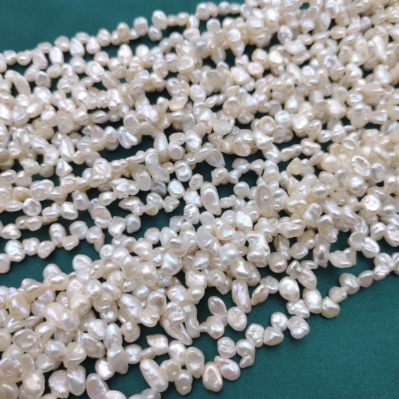 Barock kultivierten Süßwassersee Perlen, Natürliche kultivierte Süßwasserperlen, natürlich, weiß, 4-5mm, Bohrung:ca. 0.8mm, Länge:14.3 ZollInch, verkauft von Strang