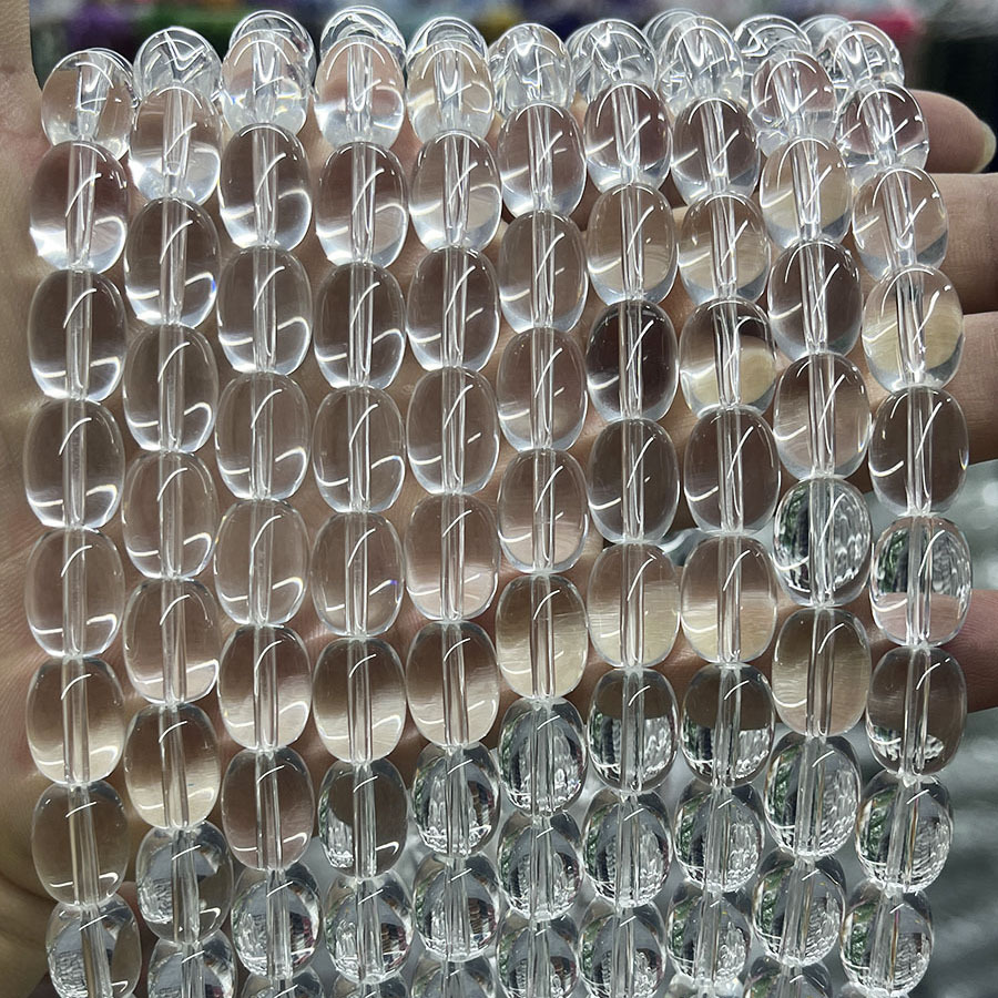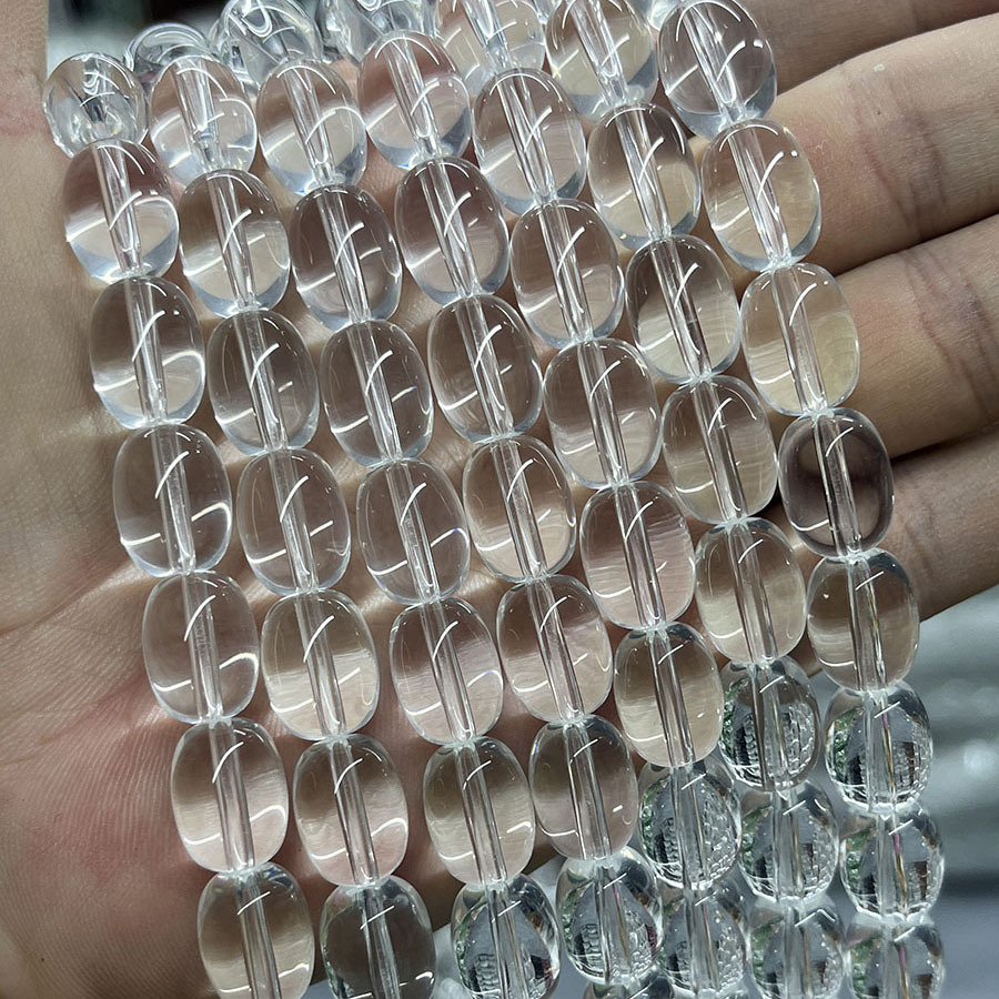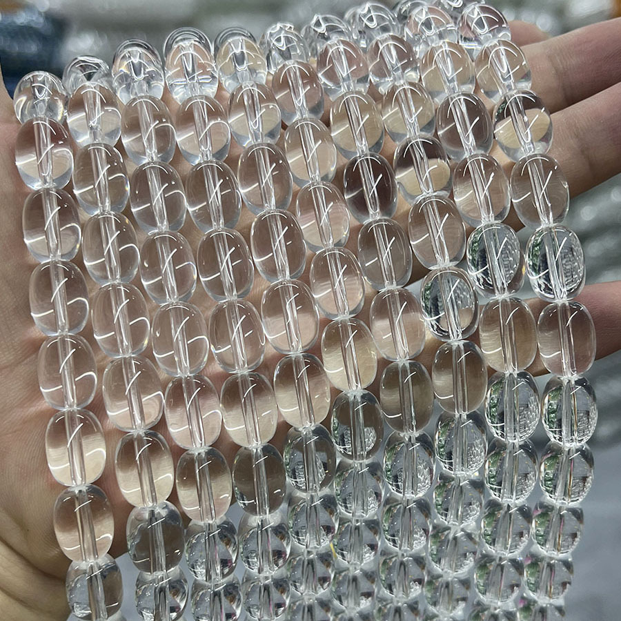 Klarer Quarz Perle, Ellipse, DIY, klar, 10-13mm, Länge:ca. 38 cm, verkauft von Strang