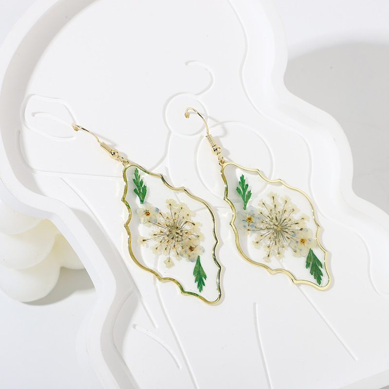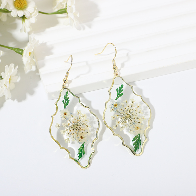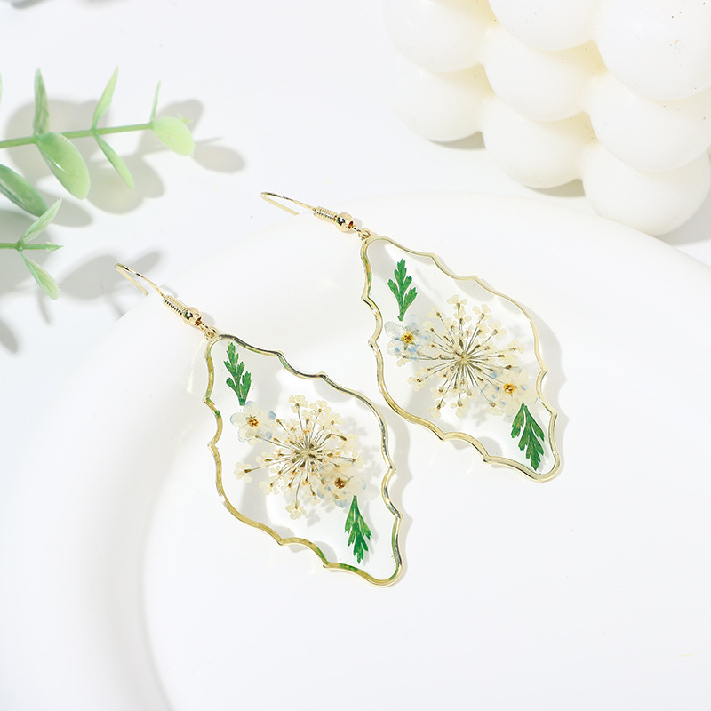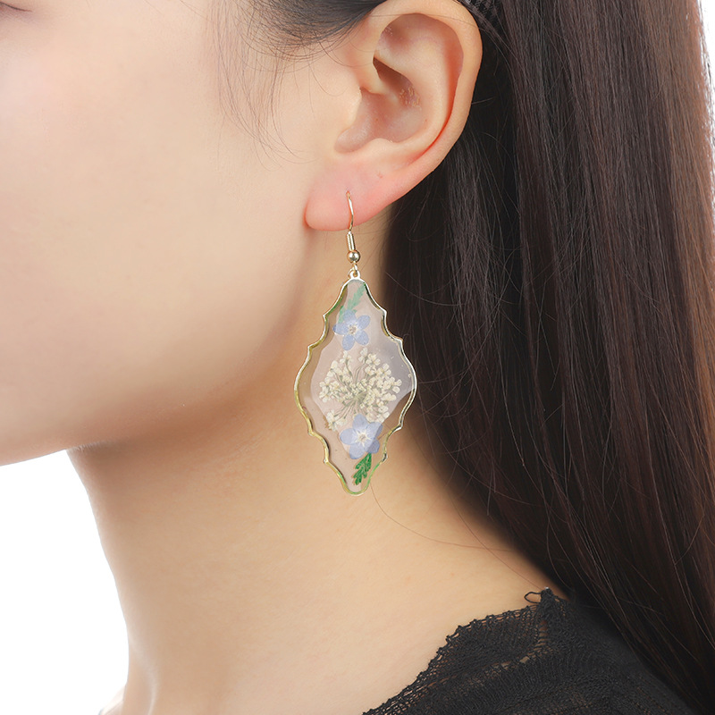 Harz Tropfen Ohrring, mit Getrocknete Blumen & Zinklegierung, Geometrisches Muster, Epoxidharzklebstoff, Modeschmuck & für Frau, earring length 30-60mm, verkauft von Paar