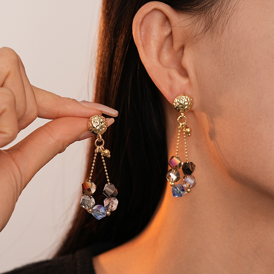 Glas Zink Legierung Ohrring, Zinklegierung, mit Glasperlen, plattiert, Modeschmuck & für Frau & hohl, goldfarben, verkauft von Paar