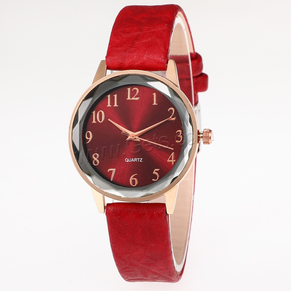 Reloj de Pulsera de mujeres, Cuero de PU, con dial de aleación de cinc & Vidrio, Redondo aplanado, barnizado, ajustable & para mujer, 39x20mm, longitud:aproximado 9.5 Inch, Vendido por Sarta