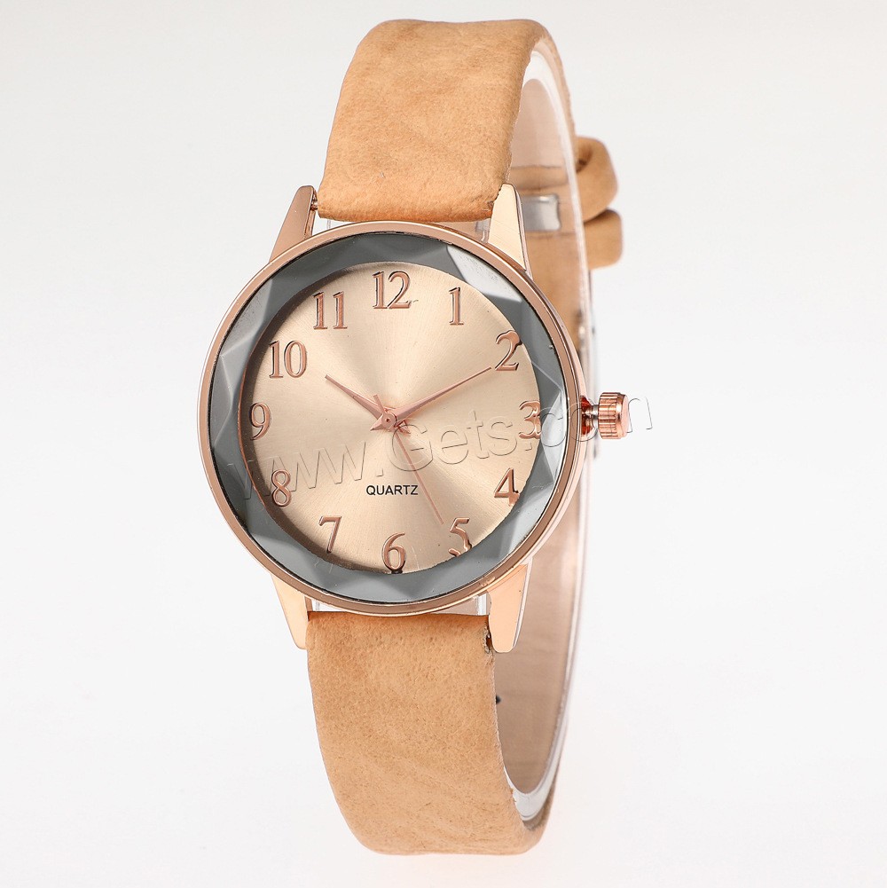 Reloj de Pulsera de mujeres, Cuero de PU, con Vidrio & aleación de zinc, chapado en color rosa dorada, para mujer & con diamantes de imitación, más colores para la opción, 40mm, longitud:aproximado 9 Inch, Vendido por UD