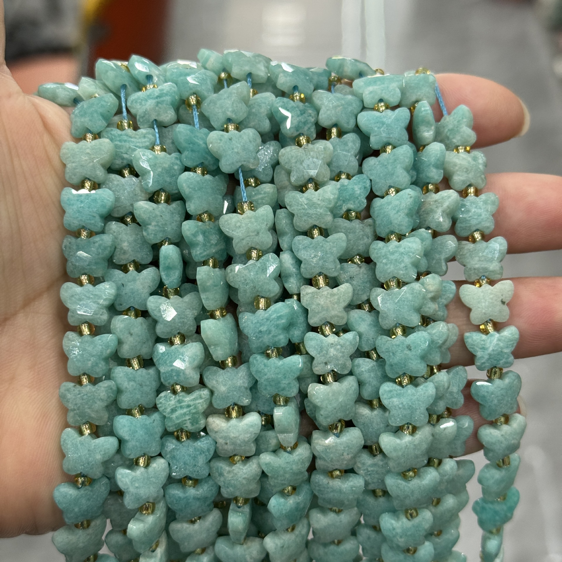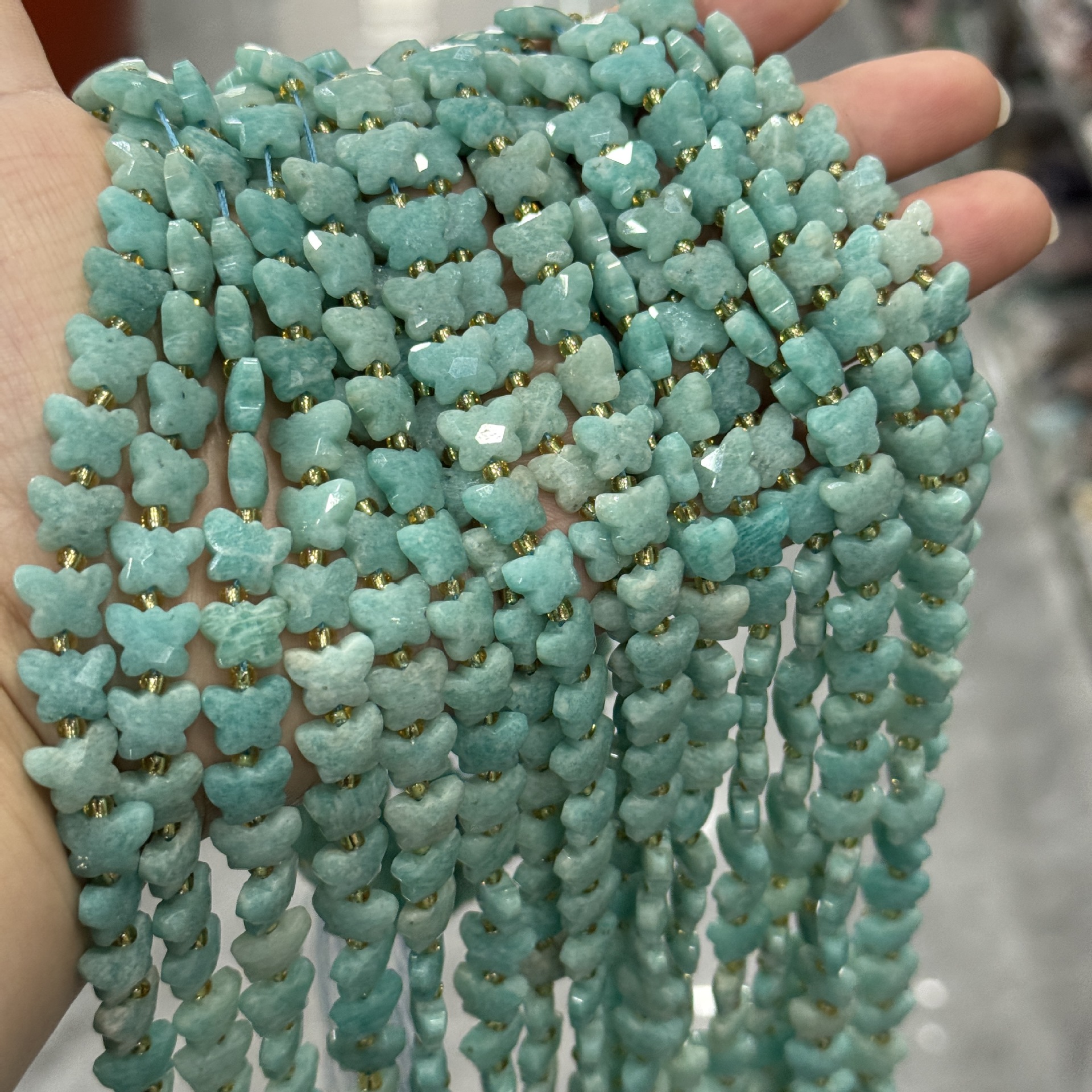 Abalorios de Amazonita, Mariposa, pulido, Bricolaje, 10x7mm, aproximado 42PCs/Sarta, Vendido por Sarta