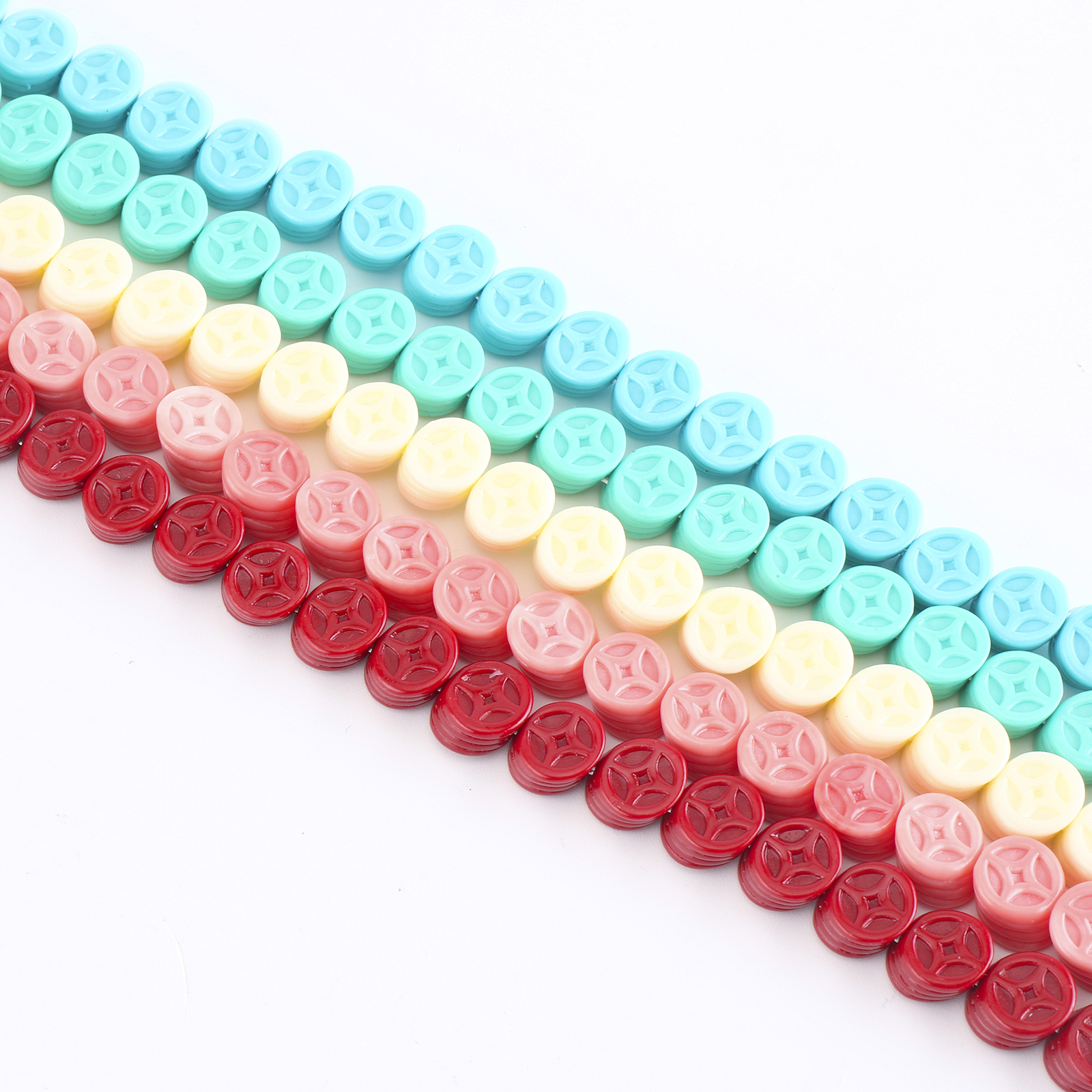 Abalorios de la resina de Color sólido, Moneda de Antiguo Chino, Bricolaje, más colores para la opción, 9x9x6mm, longitud:aproximado 38 cm, Vendido por Sarta