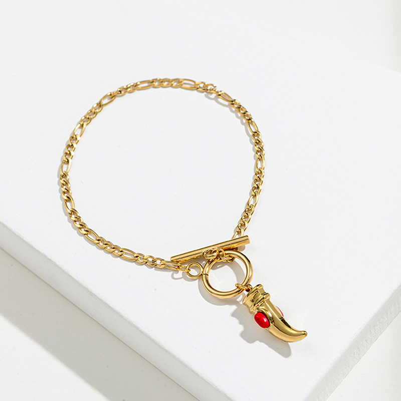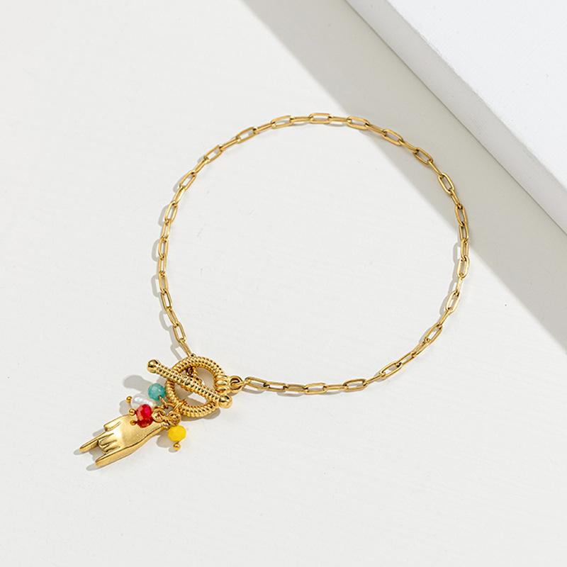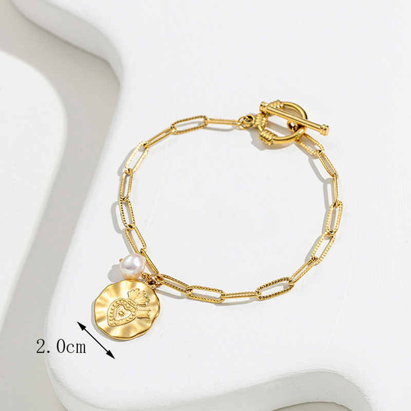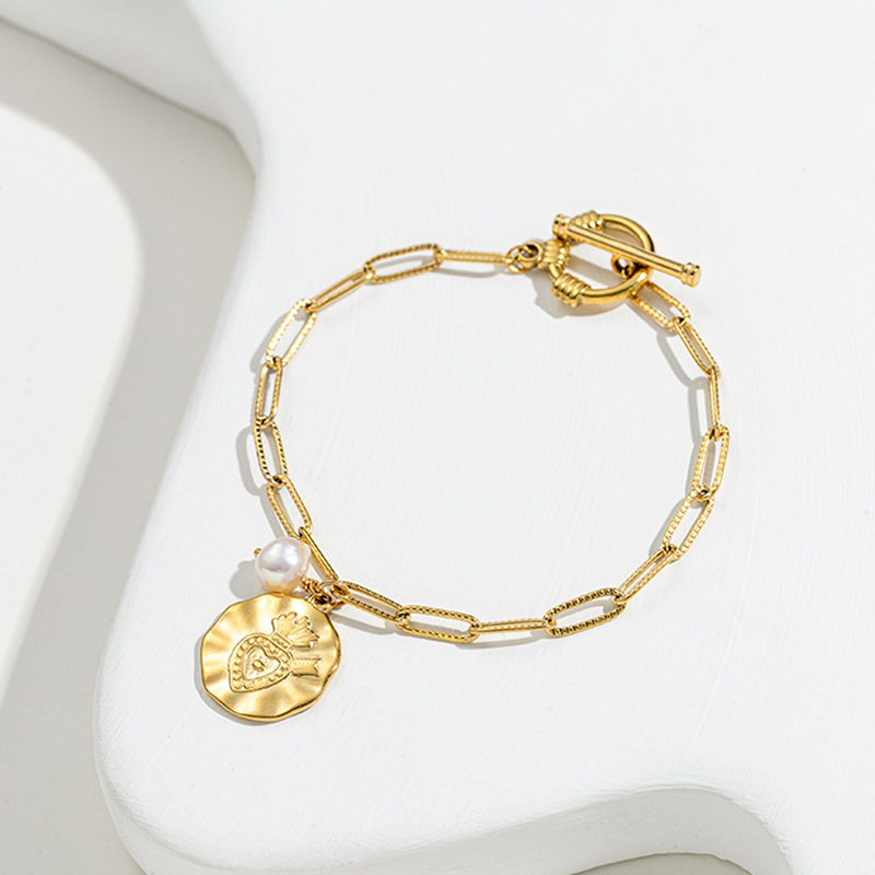 Acero inoxidable Pulsera con dijes, acero inoxidable 304, con Perlas plásticas, chapado, Joyería & diferentes estilos para la opción & para mujer, dorado, longitud:17 cm, Vendido por UD