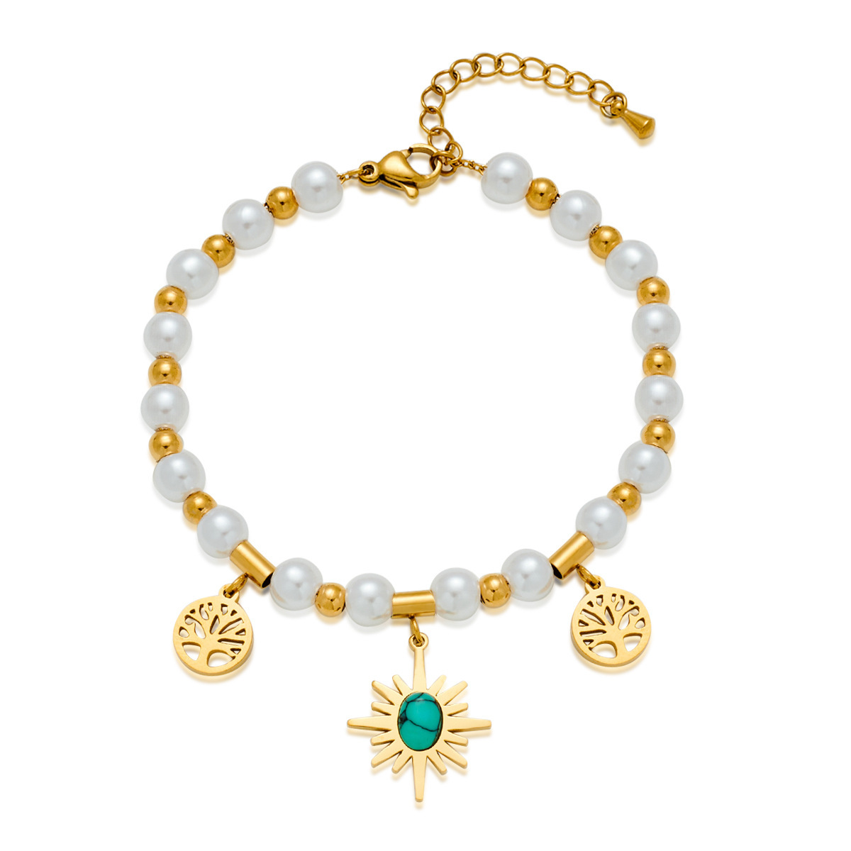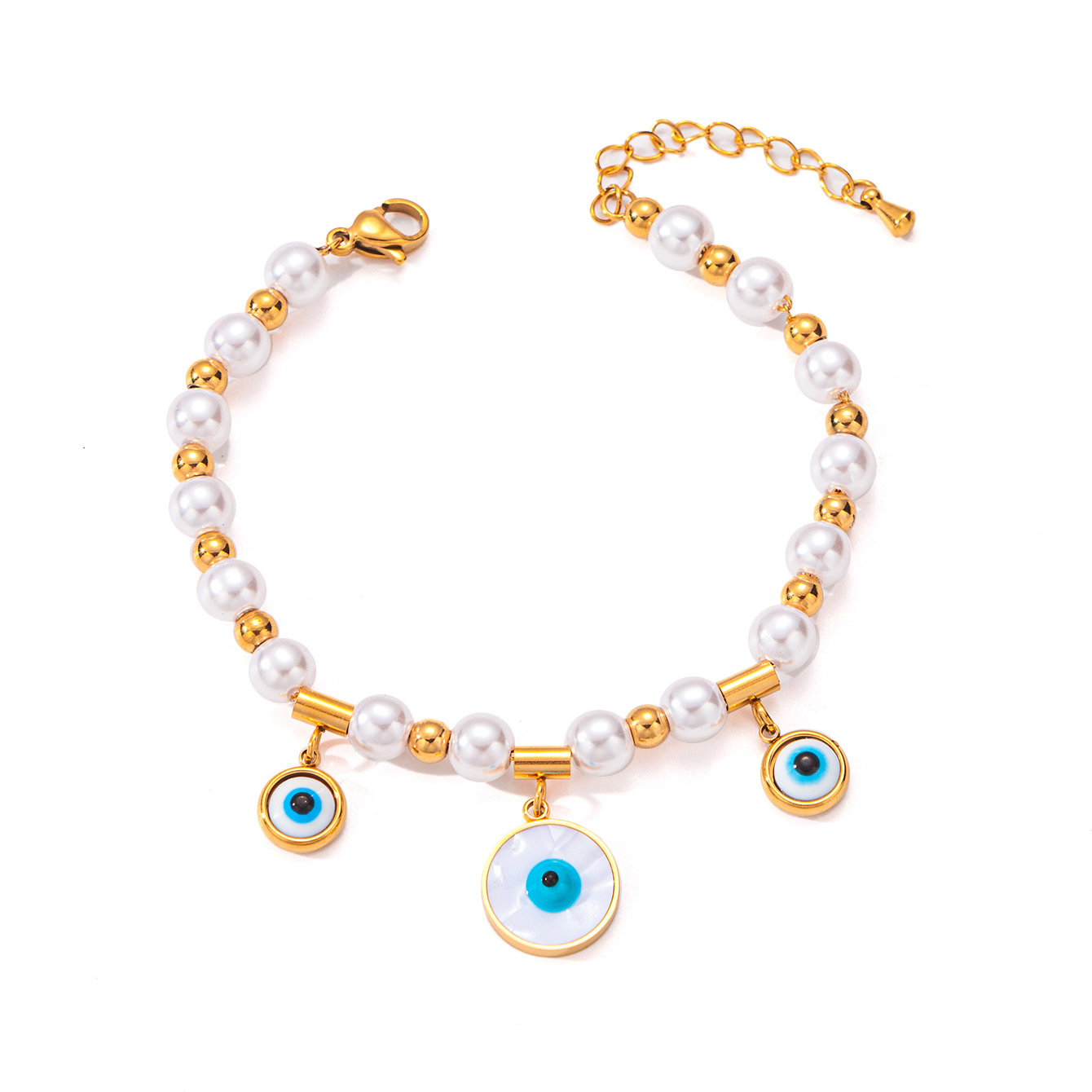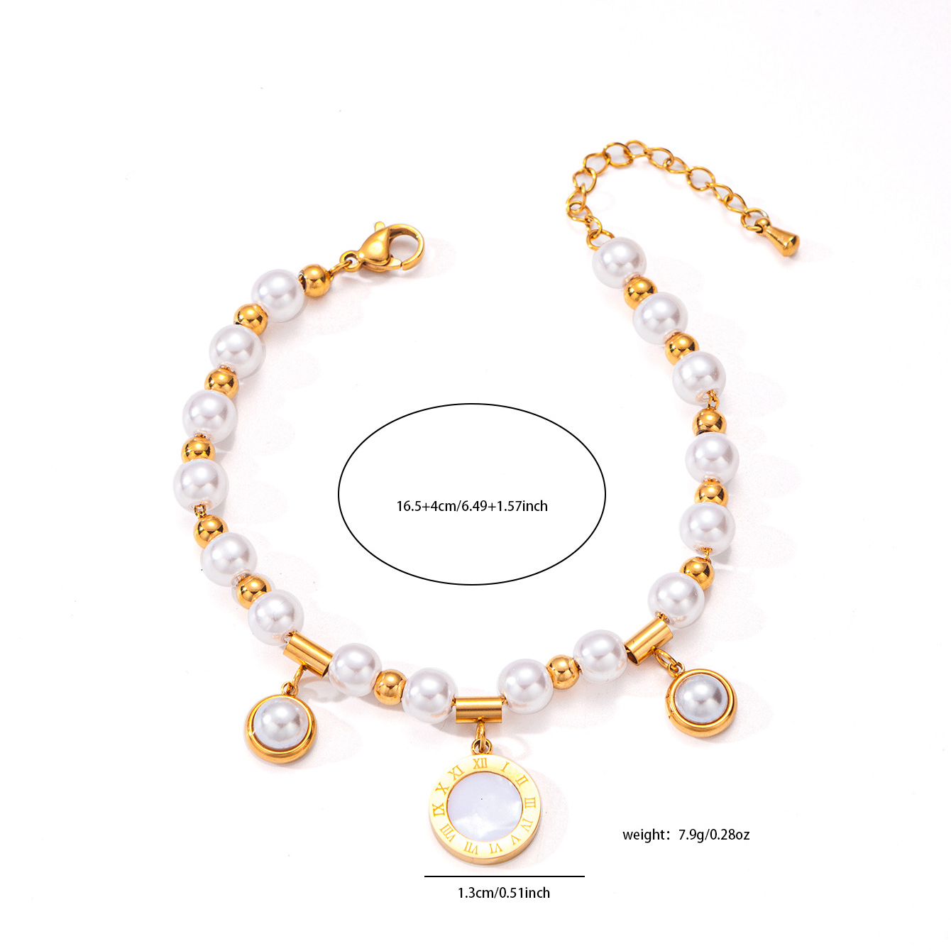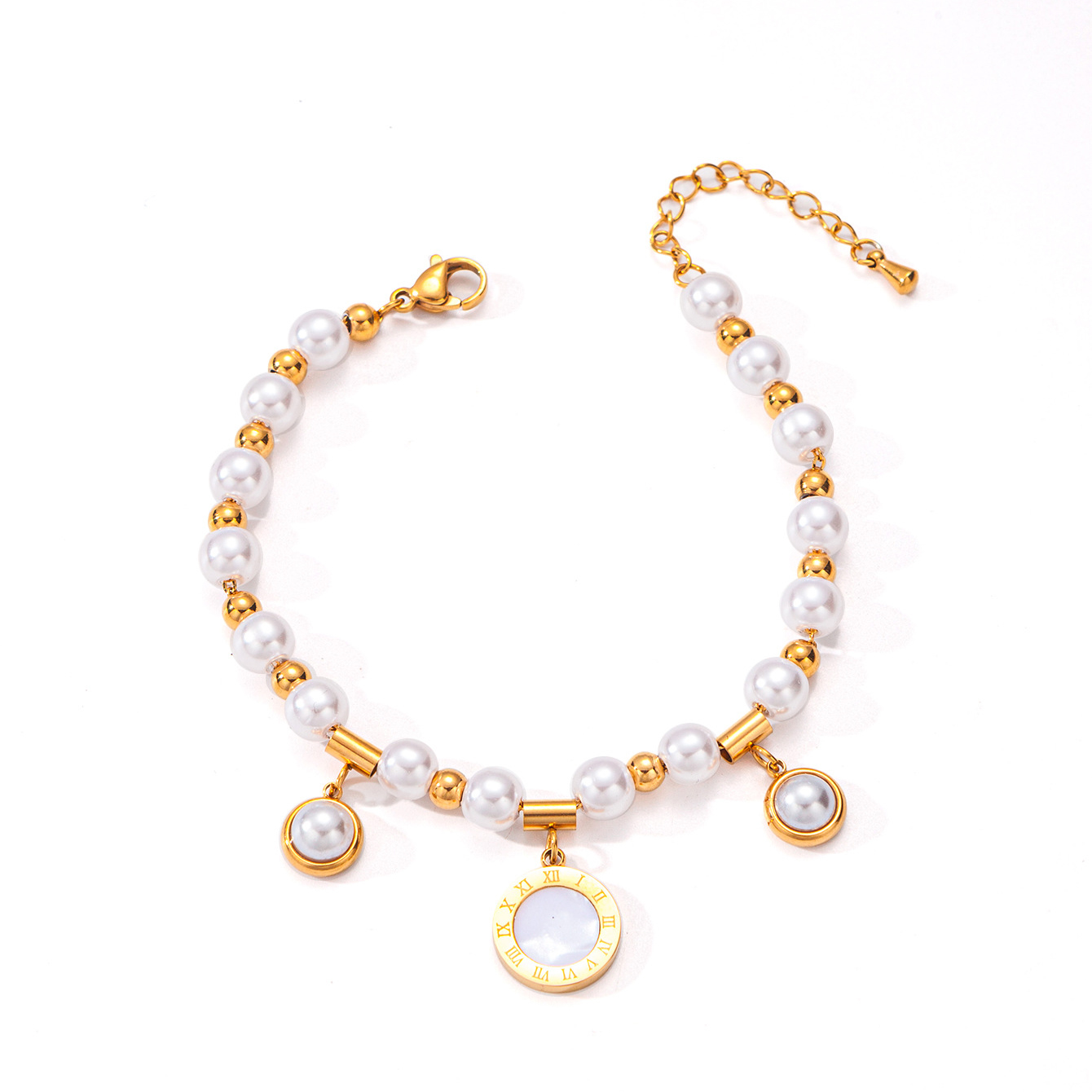 Acero inoxidable Pulsera con dijes, acero inoxidable 304, con Nácar Blanca & Perlas plásticas, 18K chapado en oro, Joyería & diferentes estilos para la opción & para mujer, Vendido por UD