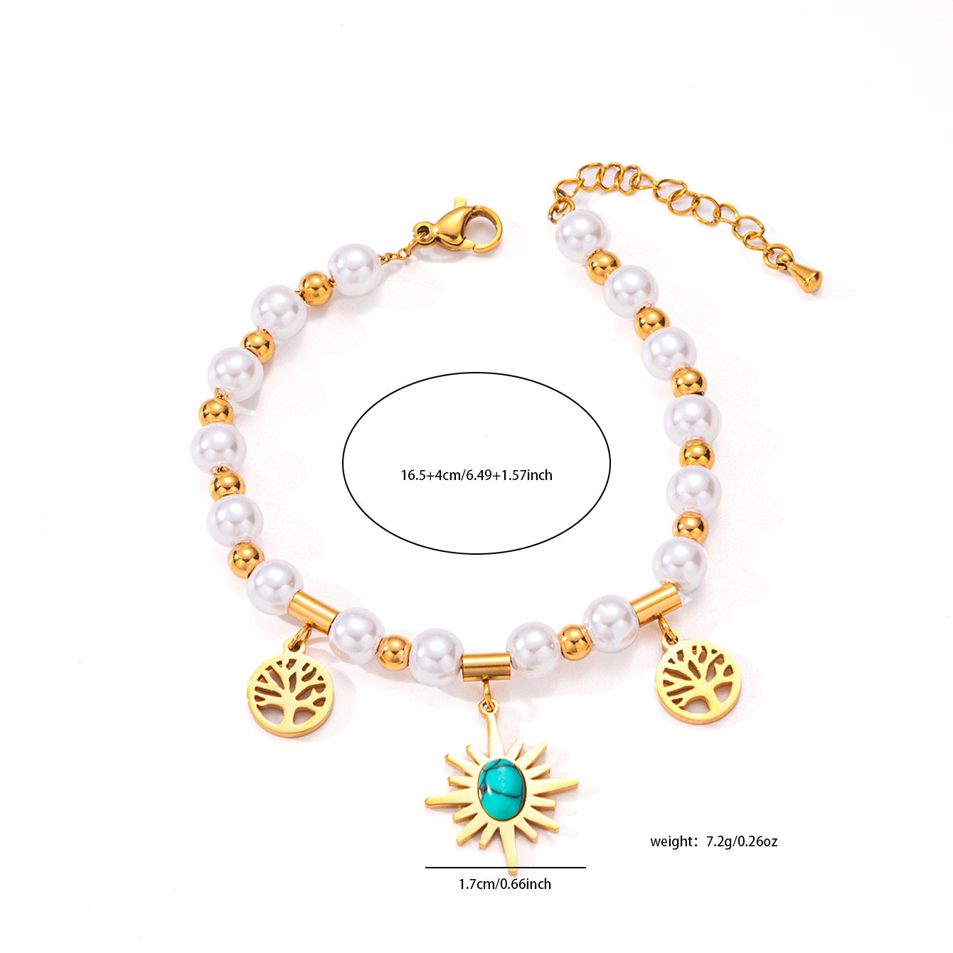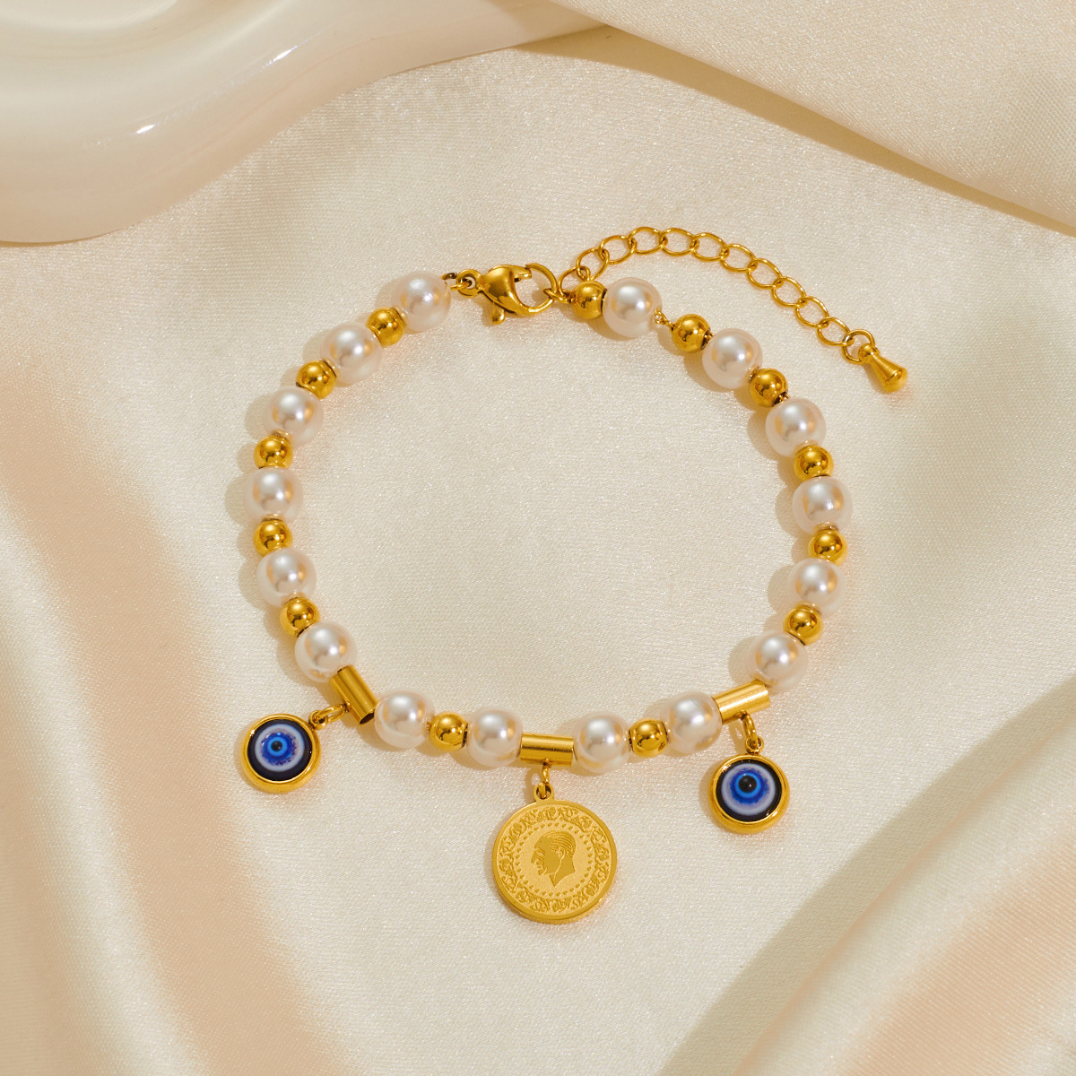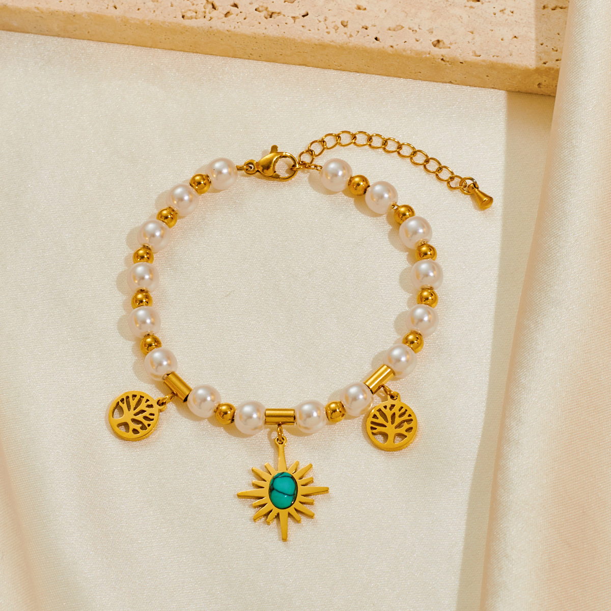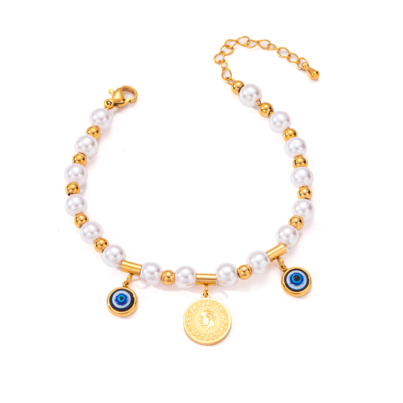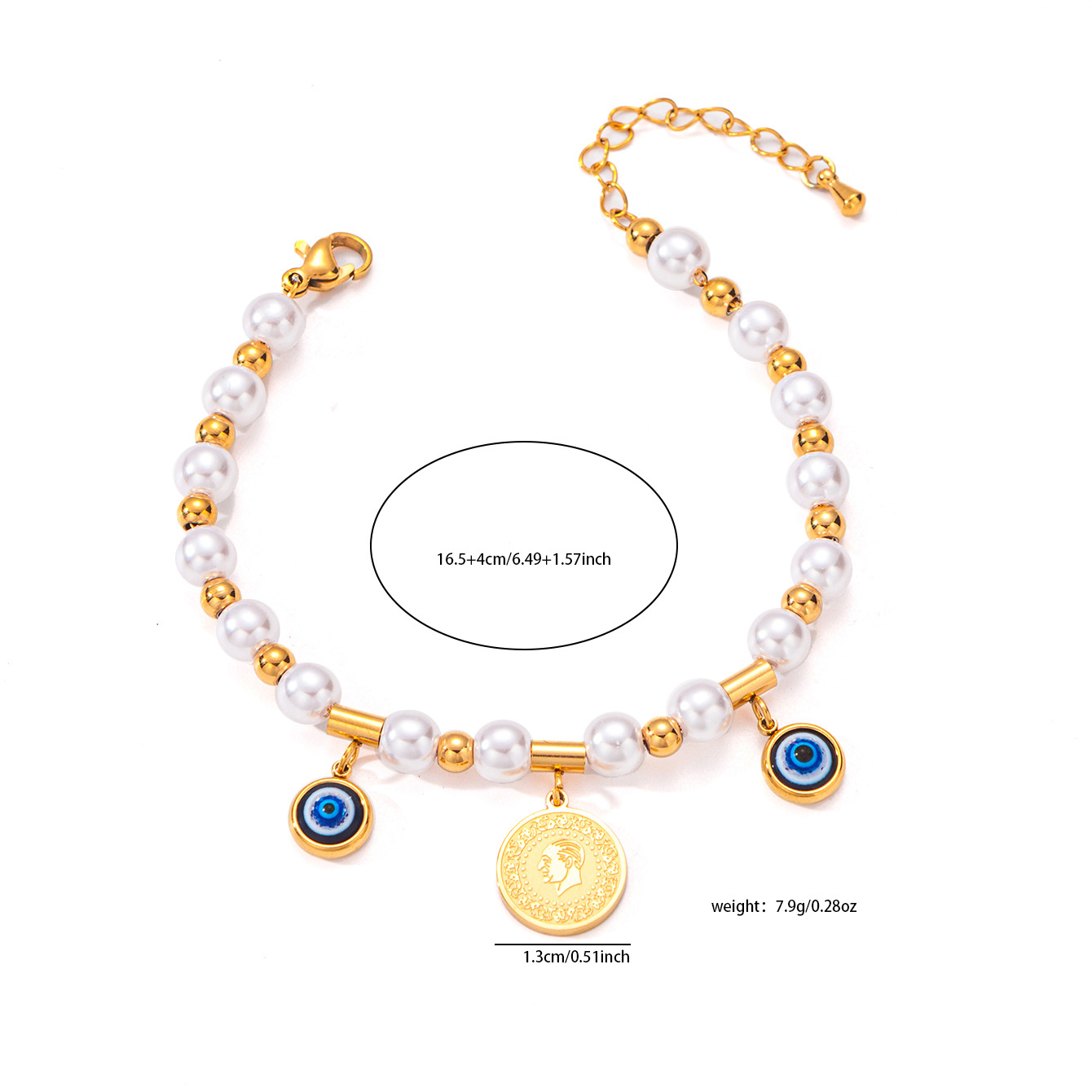 Acero inoxidable Pulsera con dijes, acero inoxidable 304, con Nácar Blanca & Perlas plásticas, 18K chapado en oro, Joyería & diferentes estilos para la opción & para mujer, Vendido por UD