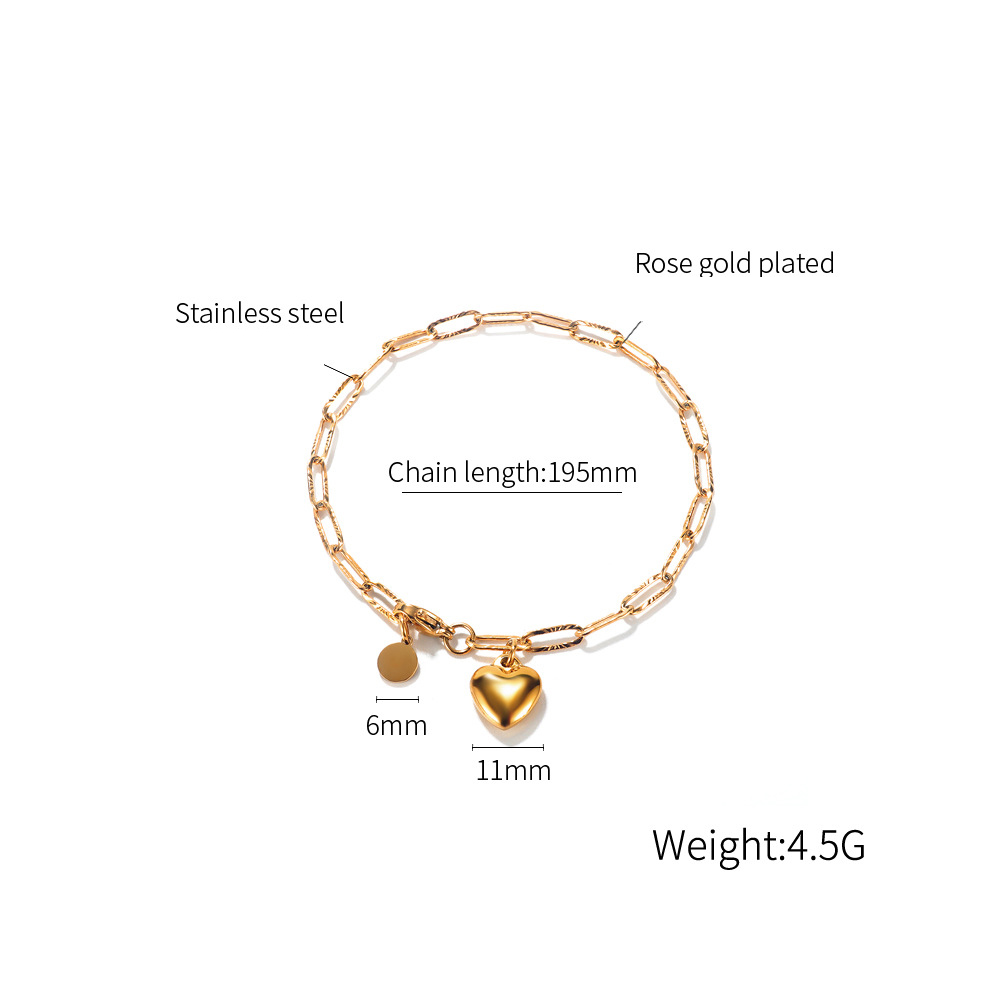 Acero inoxidable Pulsera con dijes, Corazón, pulsera del encanto & cadena oval, color original, 12x13x3mm, 20x18x1.5mm, 4mm, longitud:aproximado 8 Inch, Vendido por Sarta