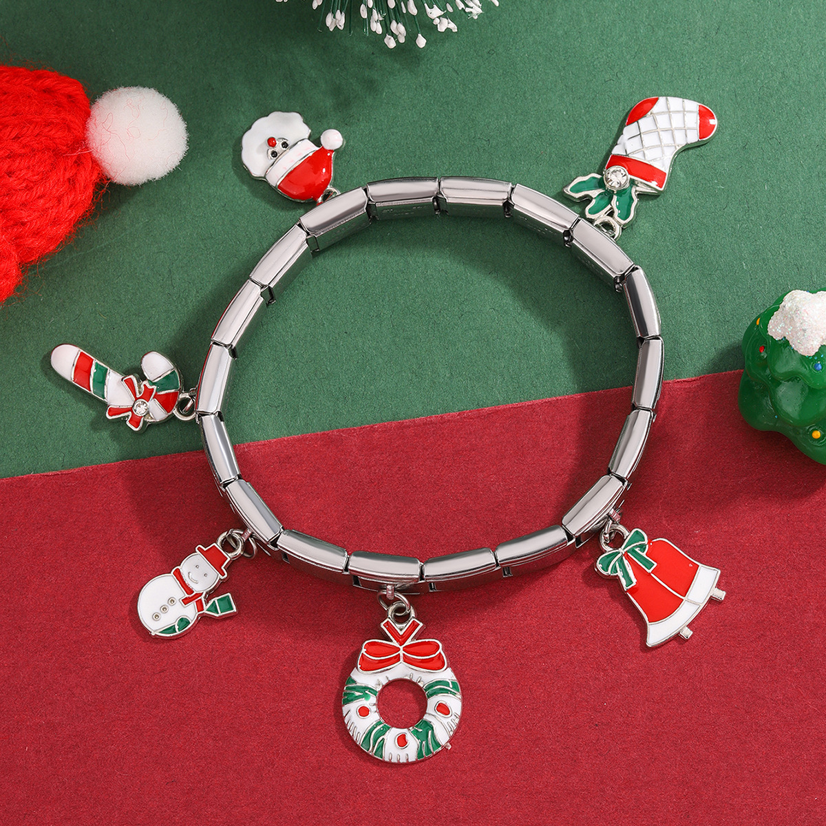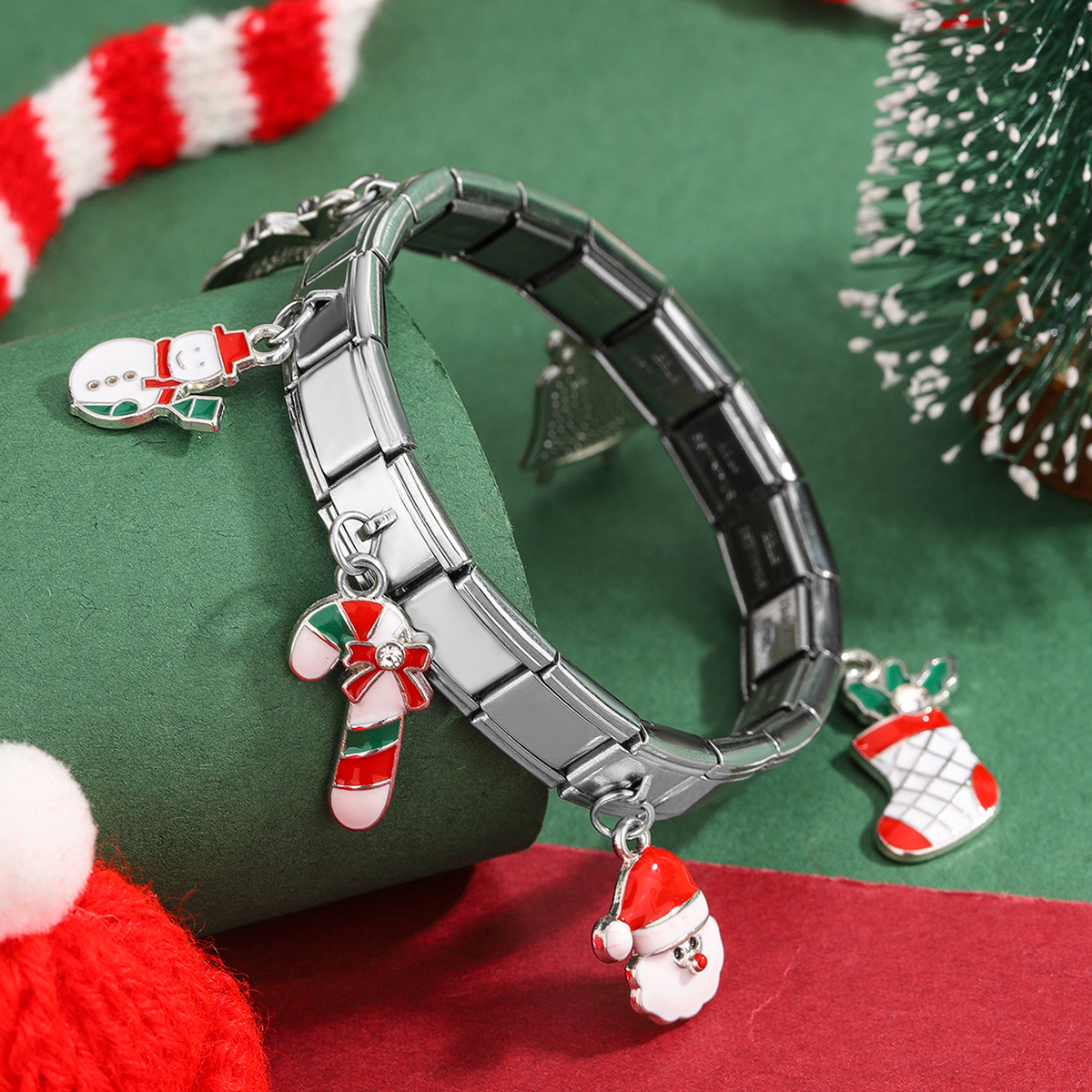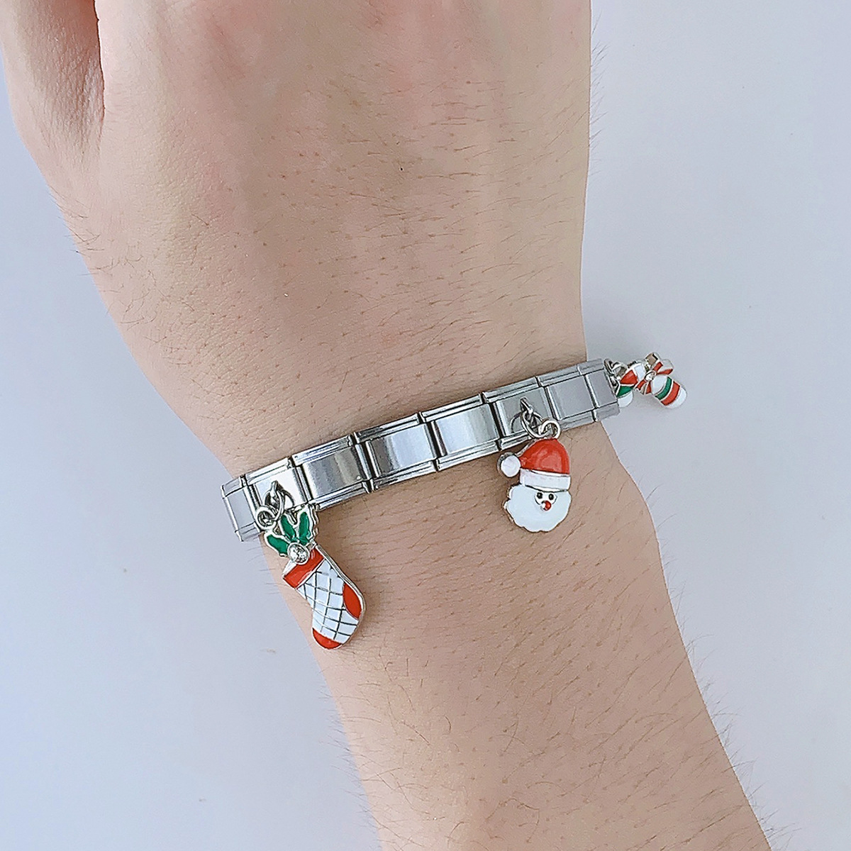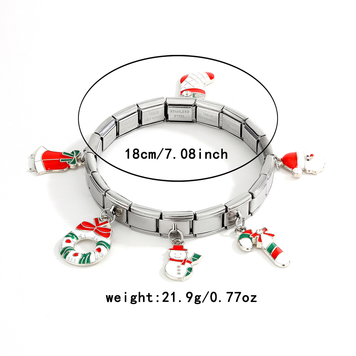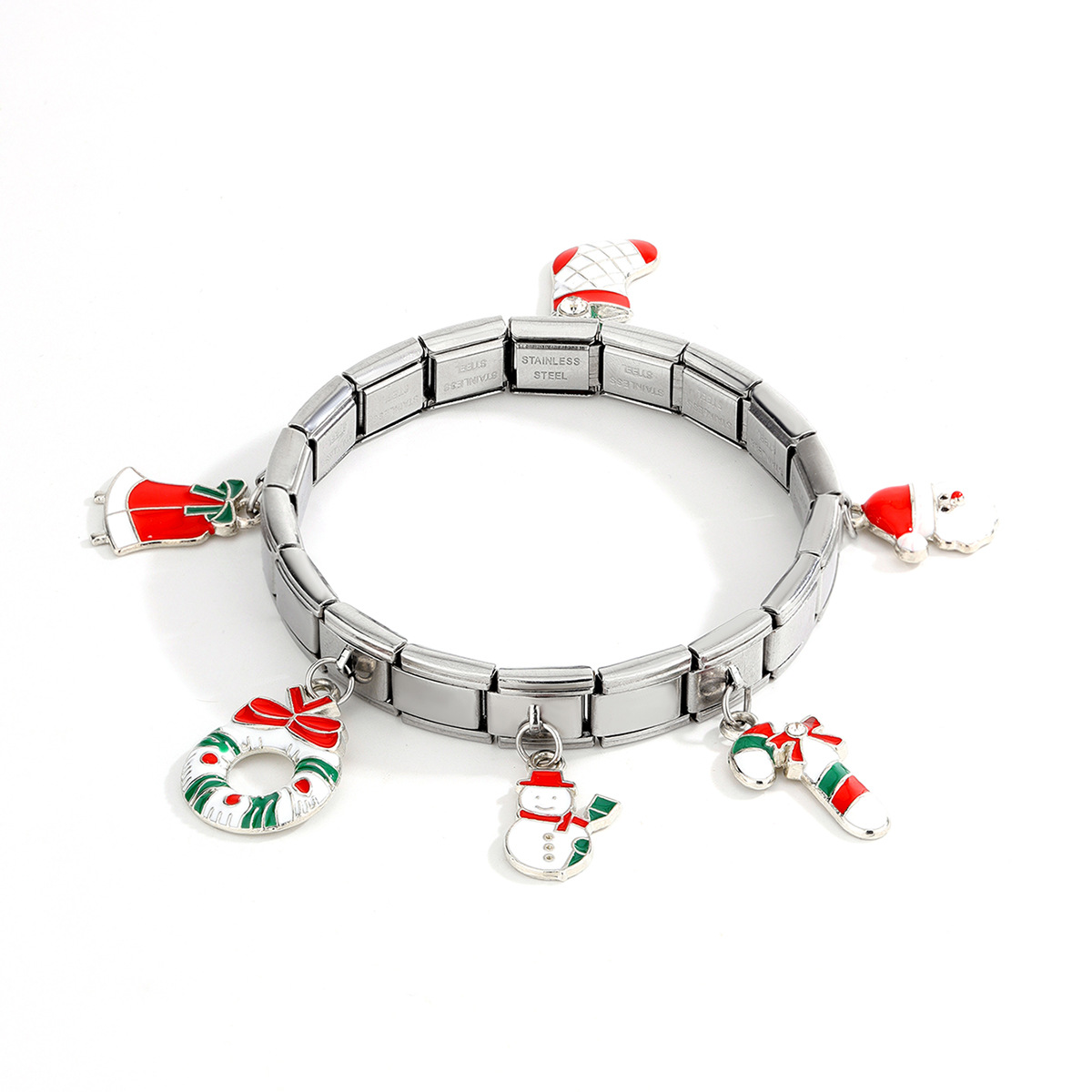Acero inoxidable Pulsera con dijes, acero inoxidable 304, chapado en color dorado, Diseño de Navidad & esmalte, más colores para la opción, Vendido por UD
