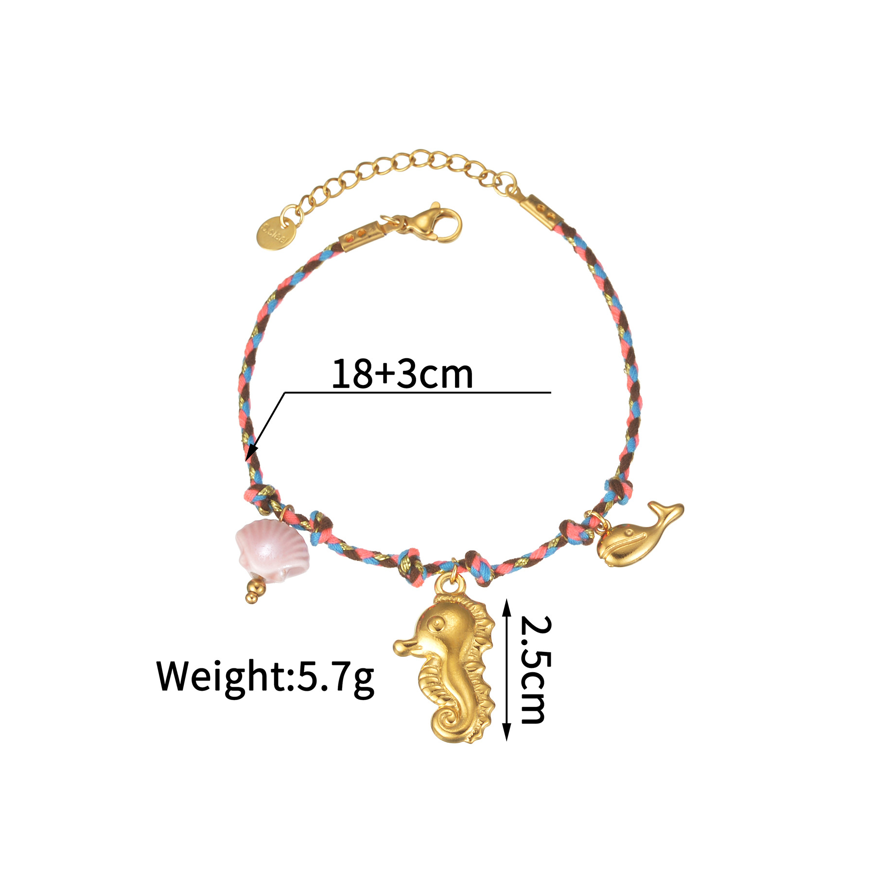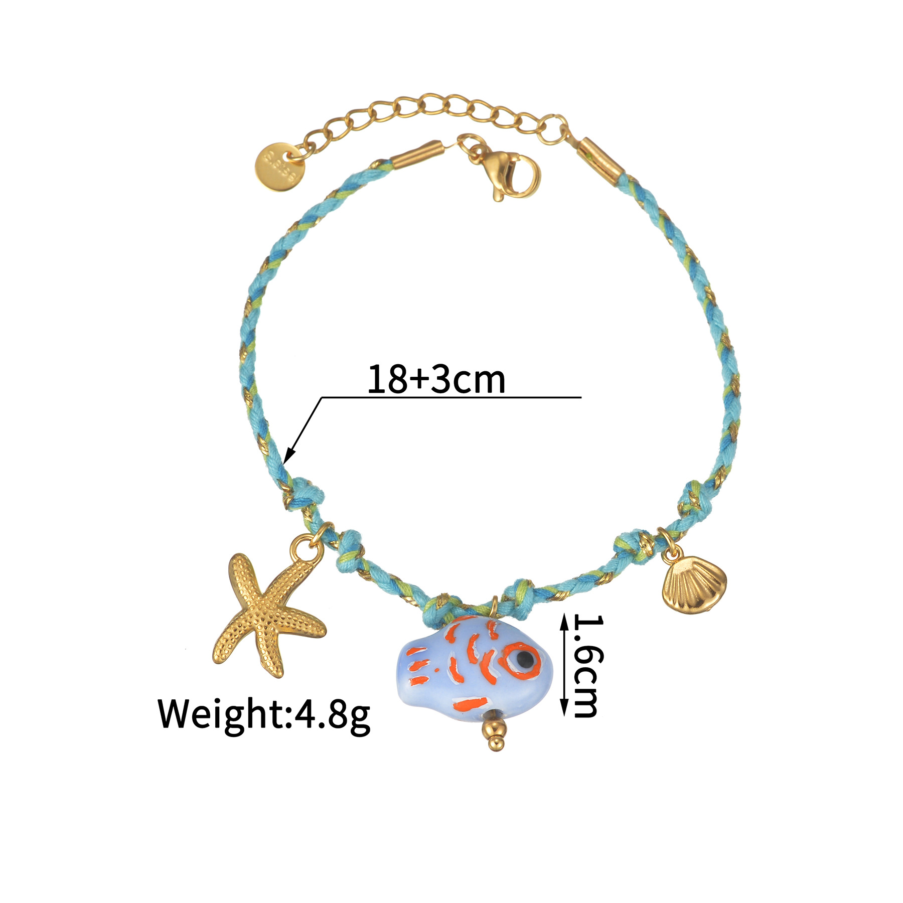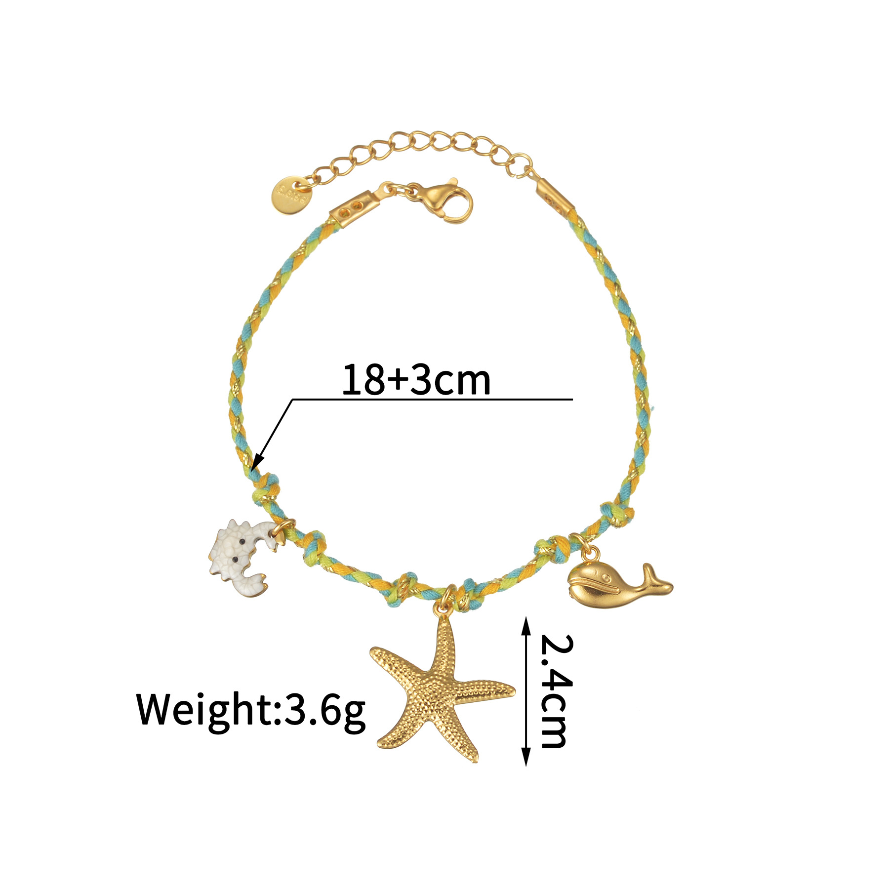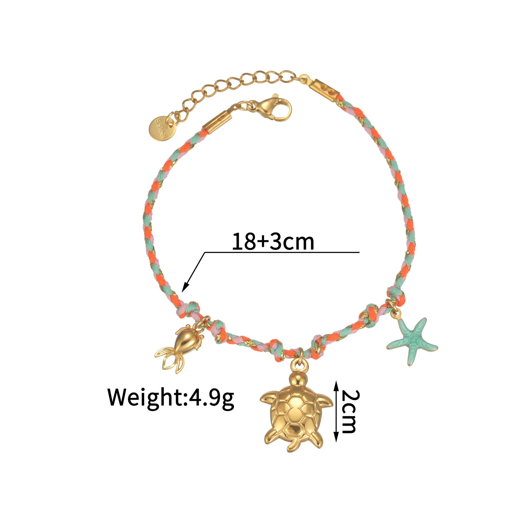 Acero inoxidable Pulsera con dijes, acero inoxidable 304, con Porcelana & cordón poliéster, chapado, Joyería & diferentes estilos para la opción & para mujer, Vendido por UD