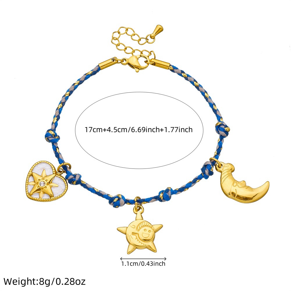 Acero inoxidable Pulsera con dijes, acero inoxidable 304, con Hilo de algodón, chapado, para mujer & esmalte & con diamantes de imitación, dorado, Vendido por UD