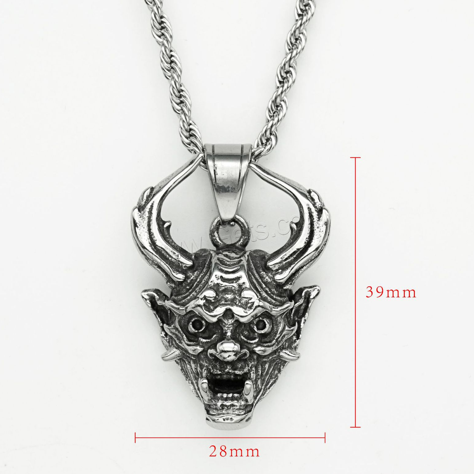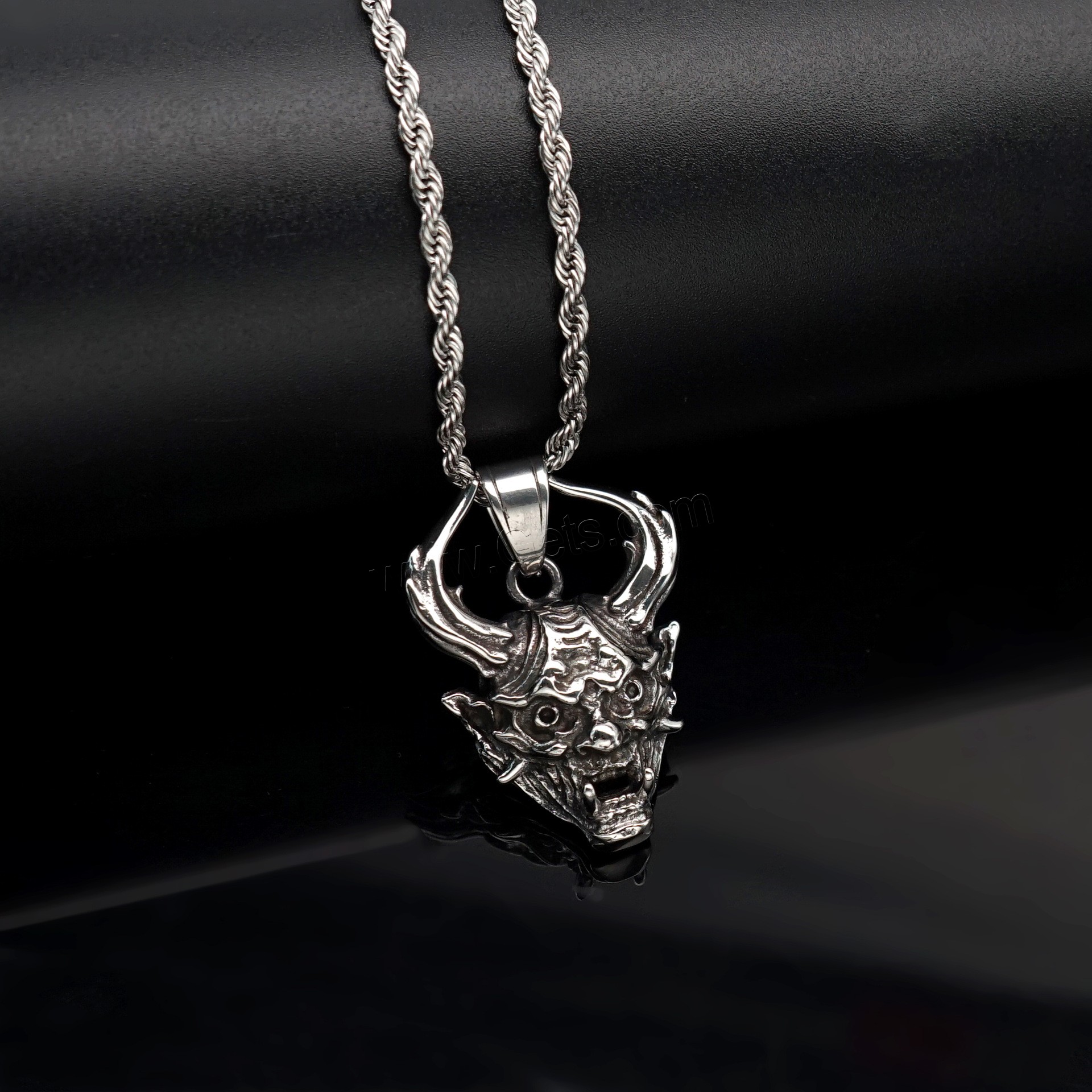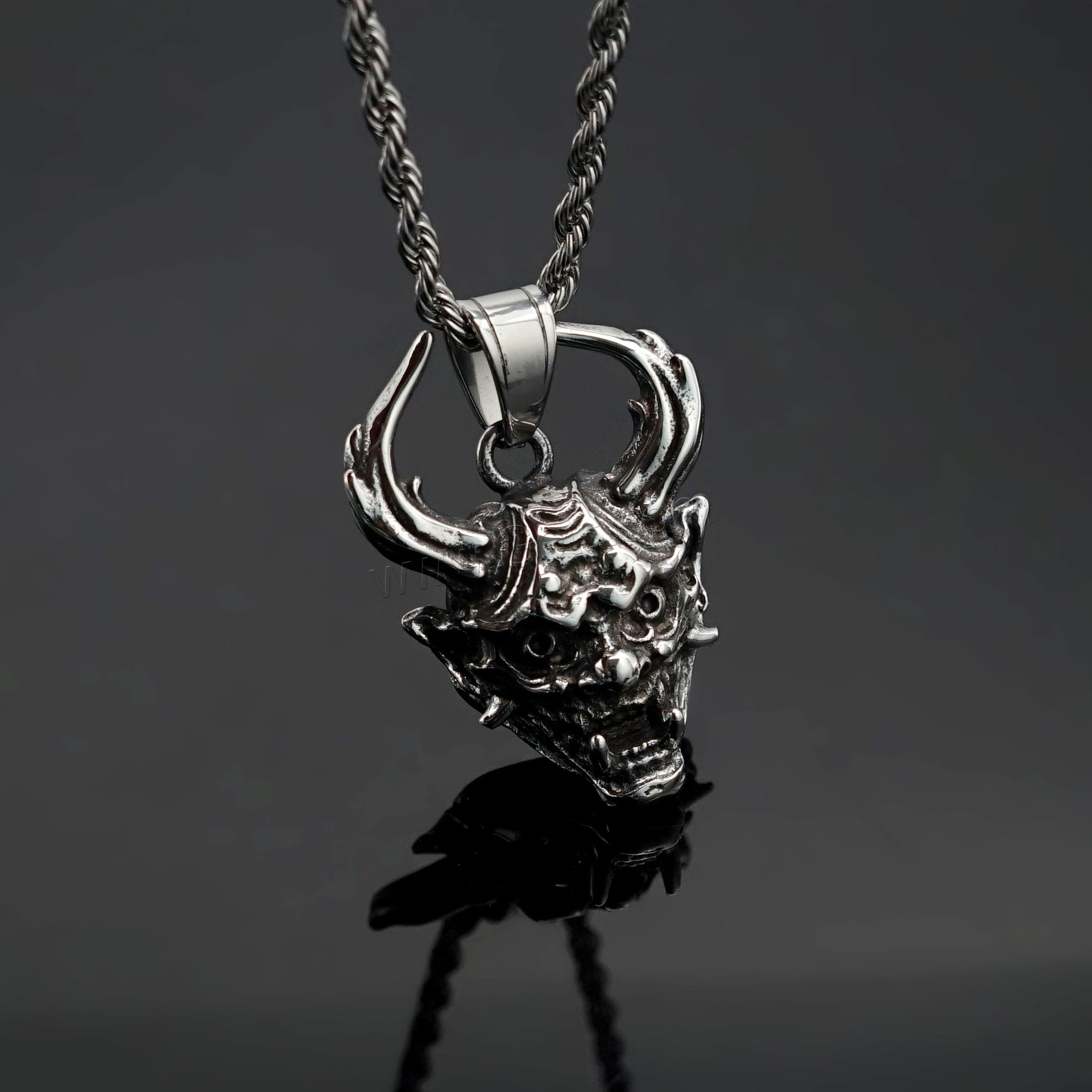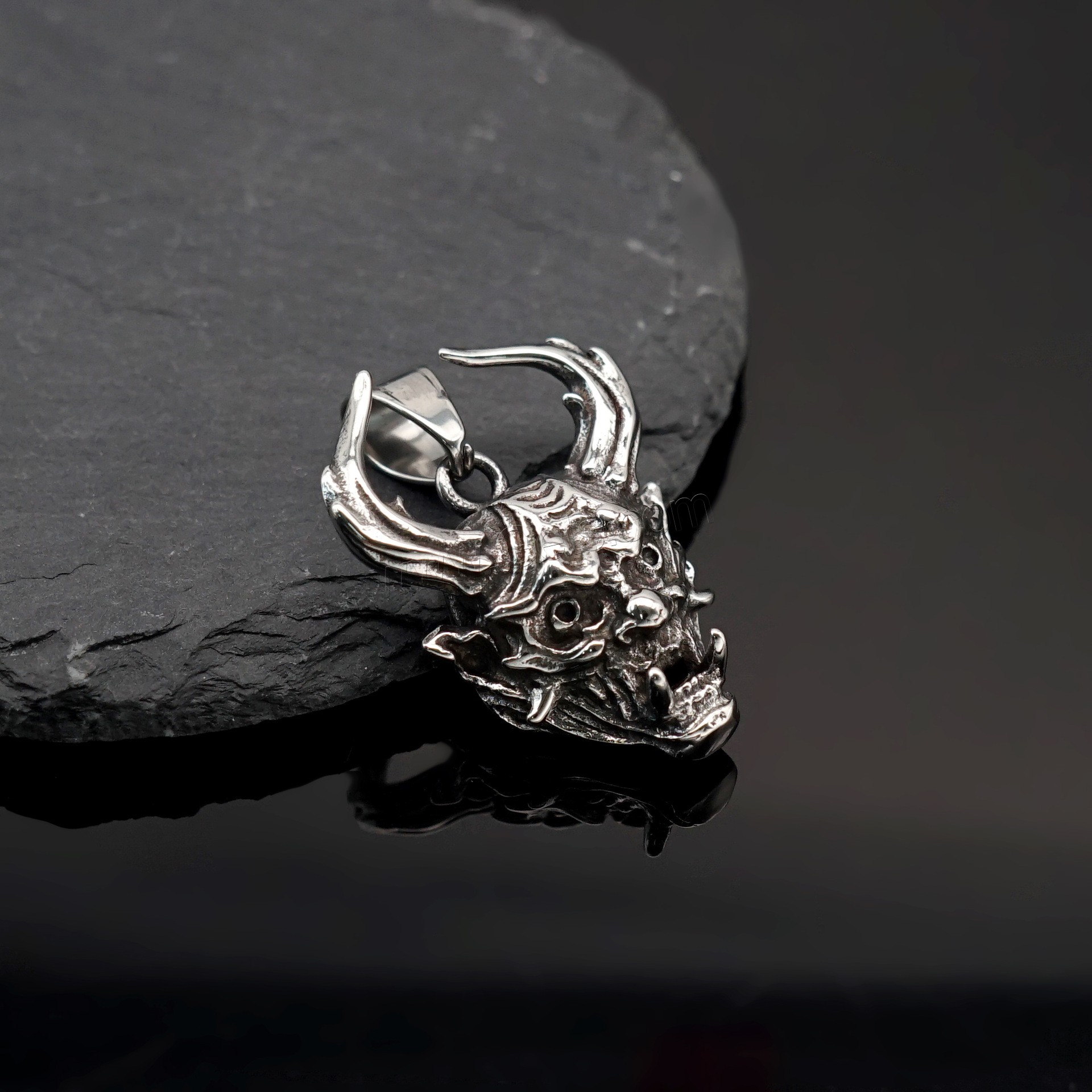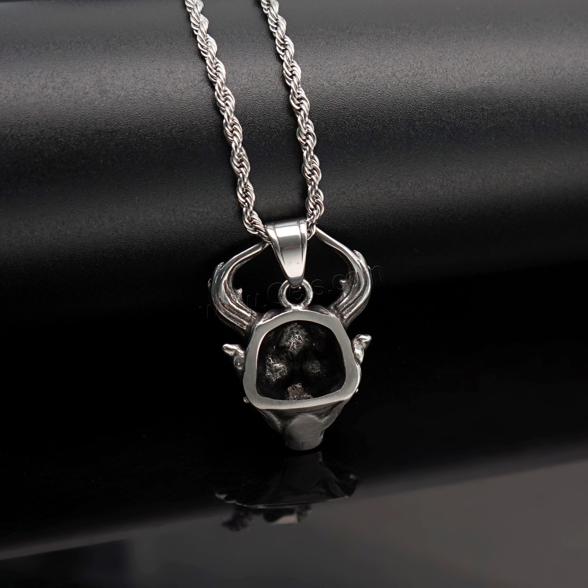 Acero inoxidable cráneo colgante, Calavera, ennegrezca, color original, 34x50x19mm, agujero:aproximado 4mm, Vendido por UD