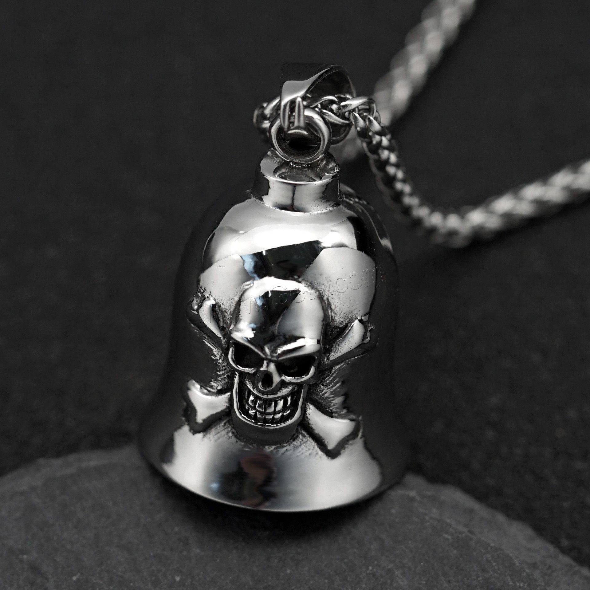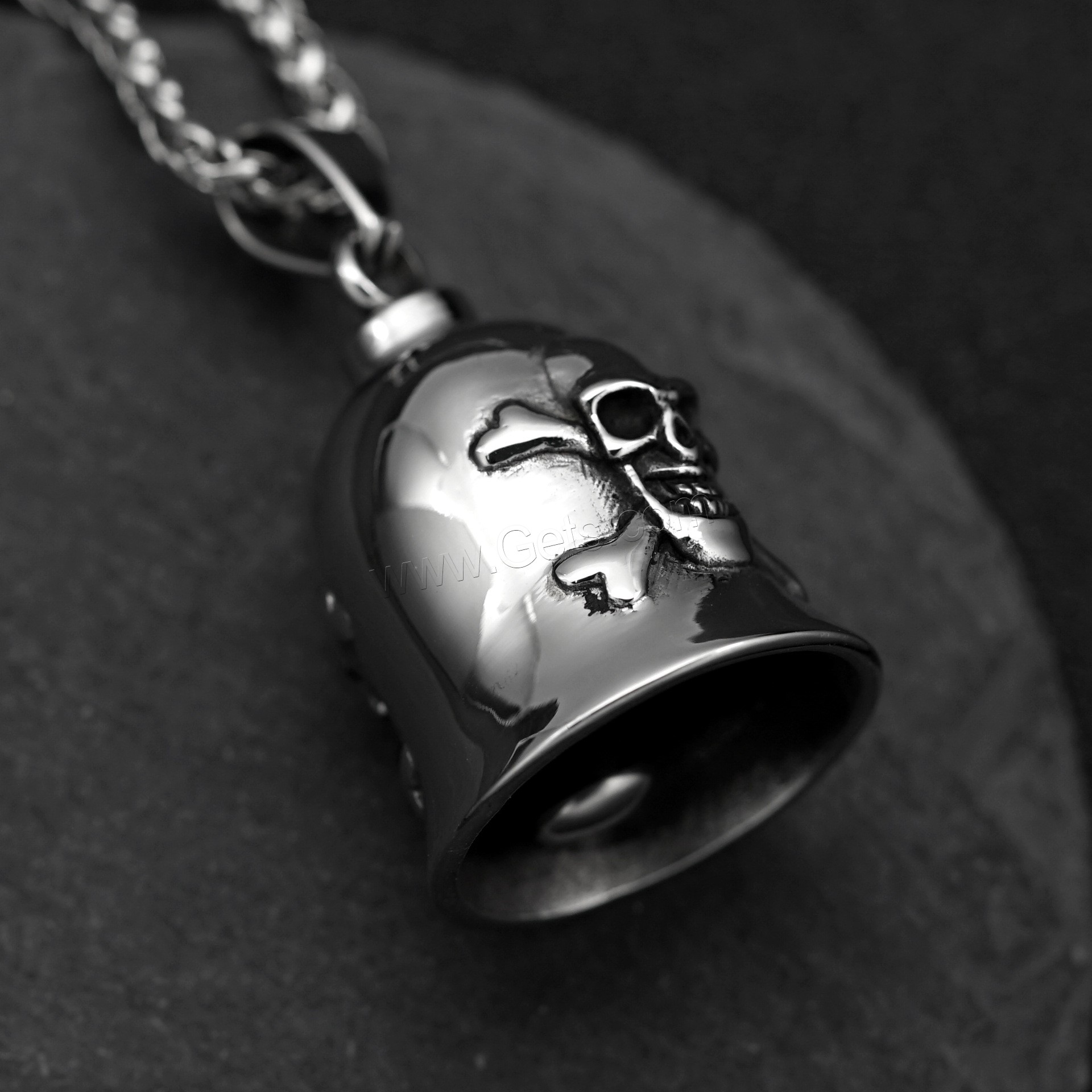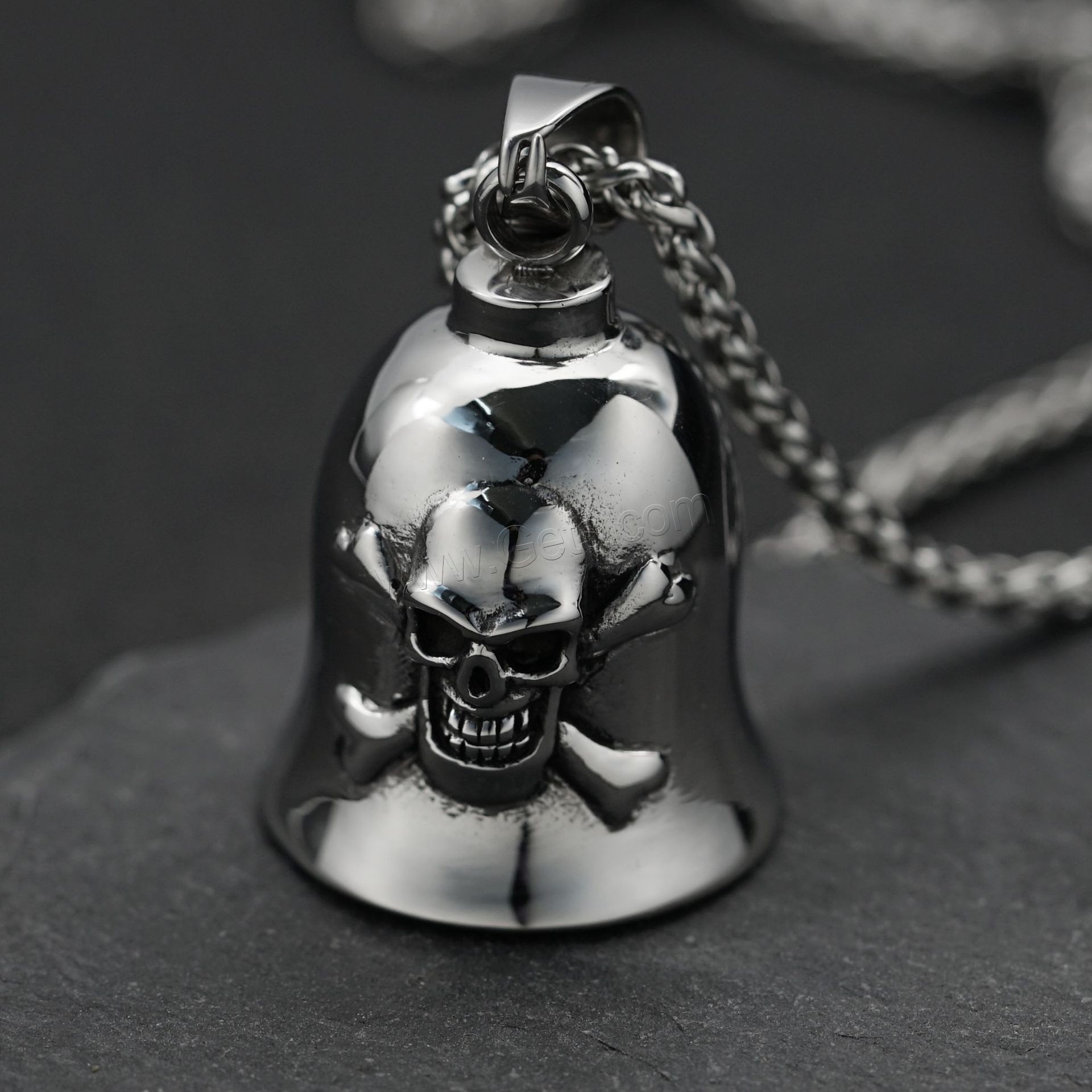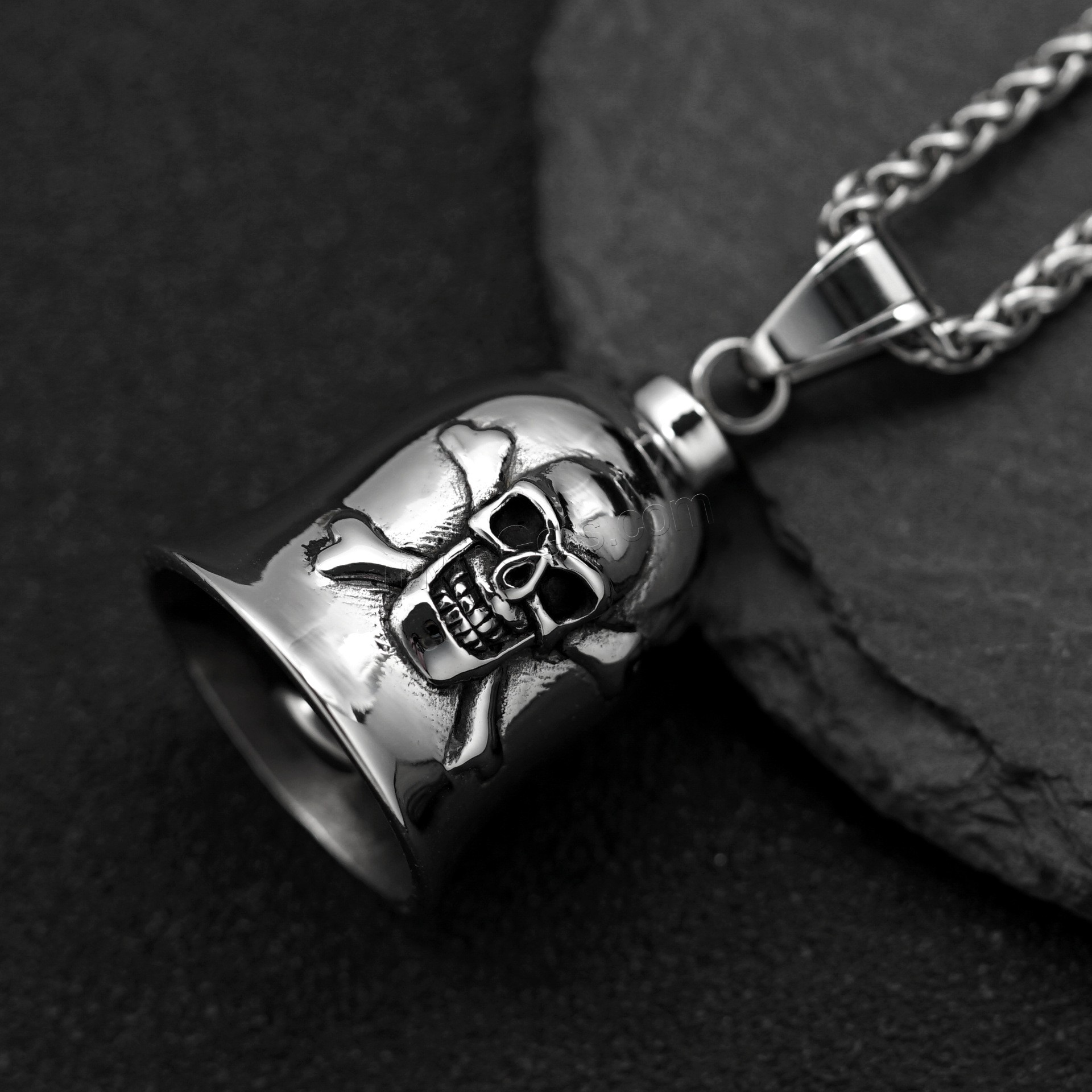 Acero inoxidable cráneo colgante, Calavera, ennegrezca, color original, 34x50x19mm, agujero:aproximado 4mm, Vendido por UD