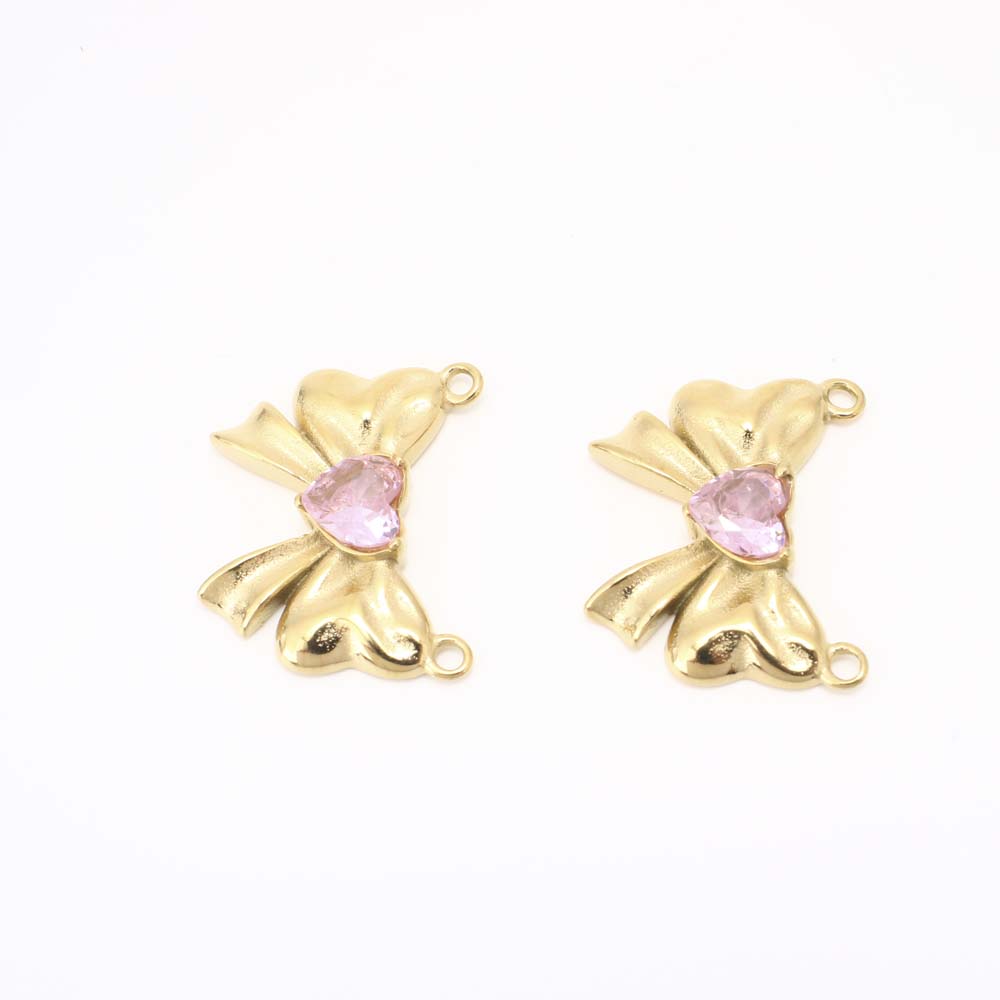 acero inoxidable 304 colgante, con cúbica circonia, Bricolaje & perforado doble, dorado, Vendido por UD