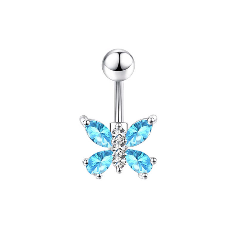 Anillo de acero inoxidable del vientre, Mariposa, para mujer & con circonia cúbica, más colores para la opción, 16x50mm, Vendido por UD