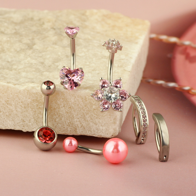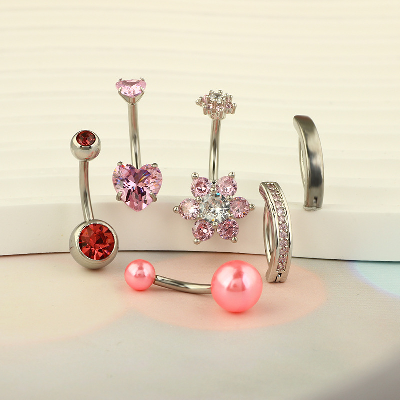 Anillo de acero inoxidable del vientre, con cúbica circonia, para mujer, Vendido por UD