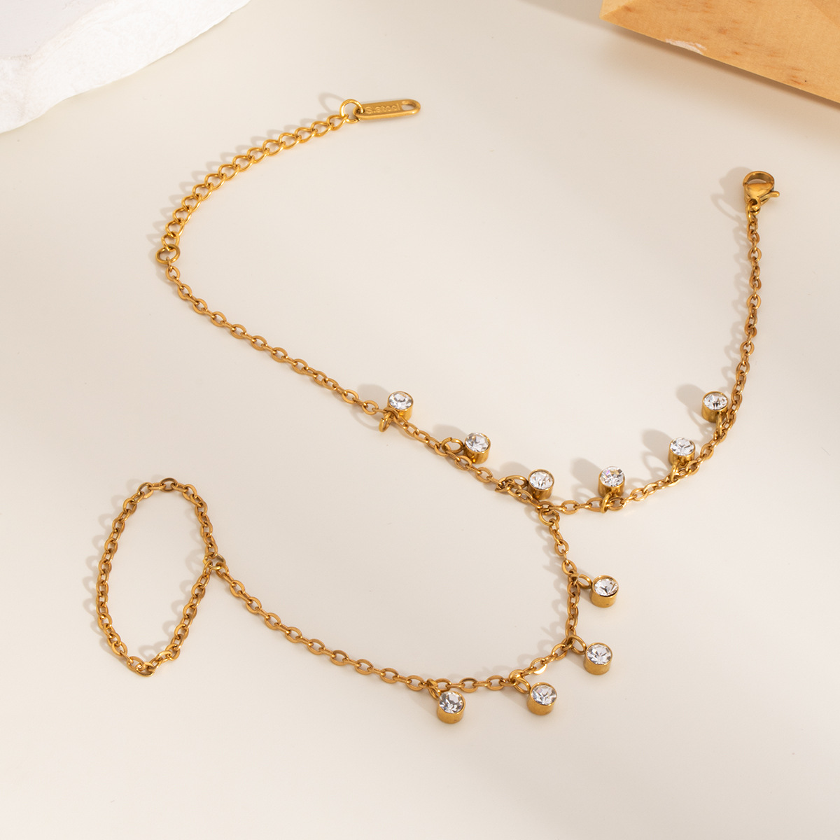 Anillo con Pulsera para Novia, Encaje, con Cinta de satén & Cristal & aleación de zinc, con 1.5Inch extender cadena, Flor, chapado, ajustable & facetas, libre de níquel, plomo & cadmio, 130x28mm, tamaño:4, longitud:aproximado 6 Inch, Vendido por Sarta