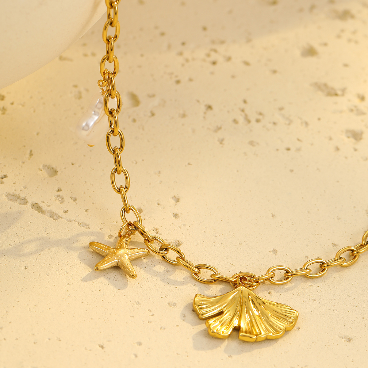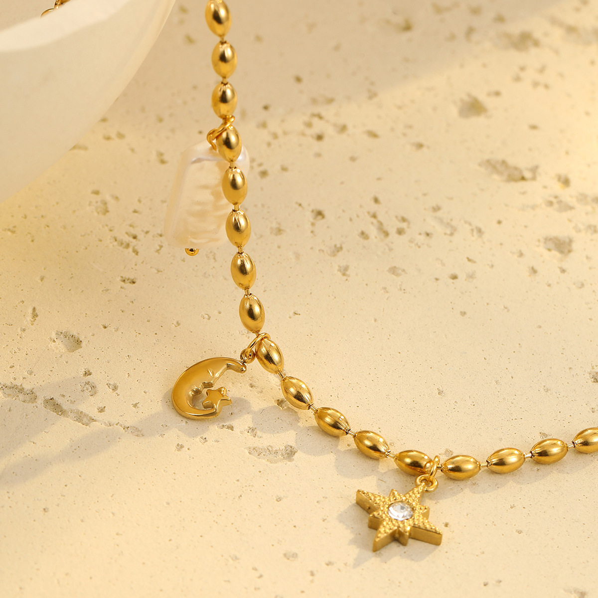 Acero inoxidable Pulsera con dijes, Estrella, pulsera del encanto & cadena oval, color original, 14x18x1mm, longitud:aproximado 8 Inch, Vendido por Sarta