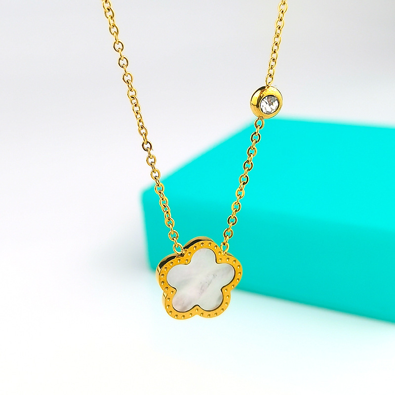 acero inoxidable 304 collar, con resina, con 2inch extender cadena, Flor, chapado en color dorado, cadena oval & para mujer & con diamantes de imitación, más colores para la opción, longitud:aproximado 17.7 Inch, Vendido por UD