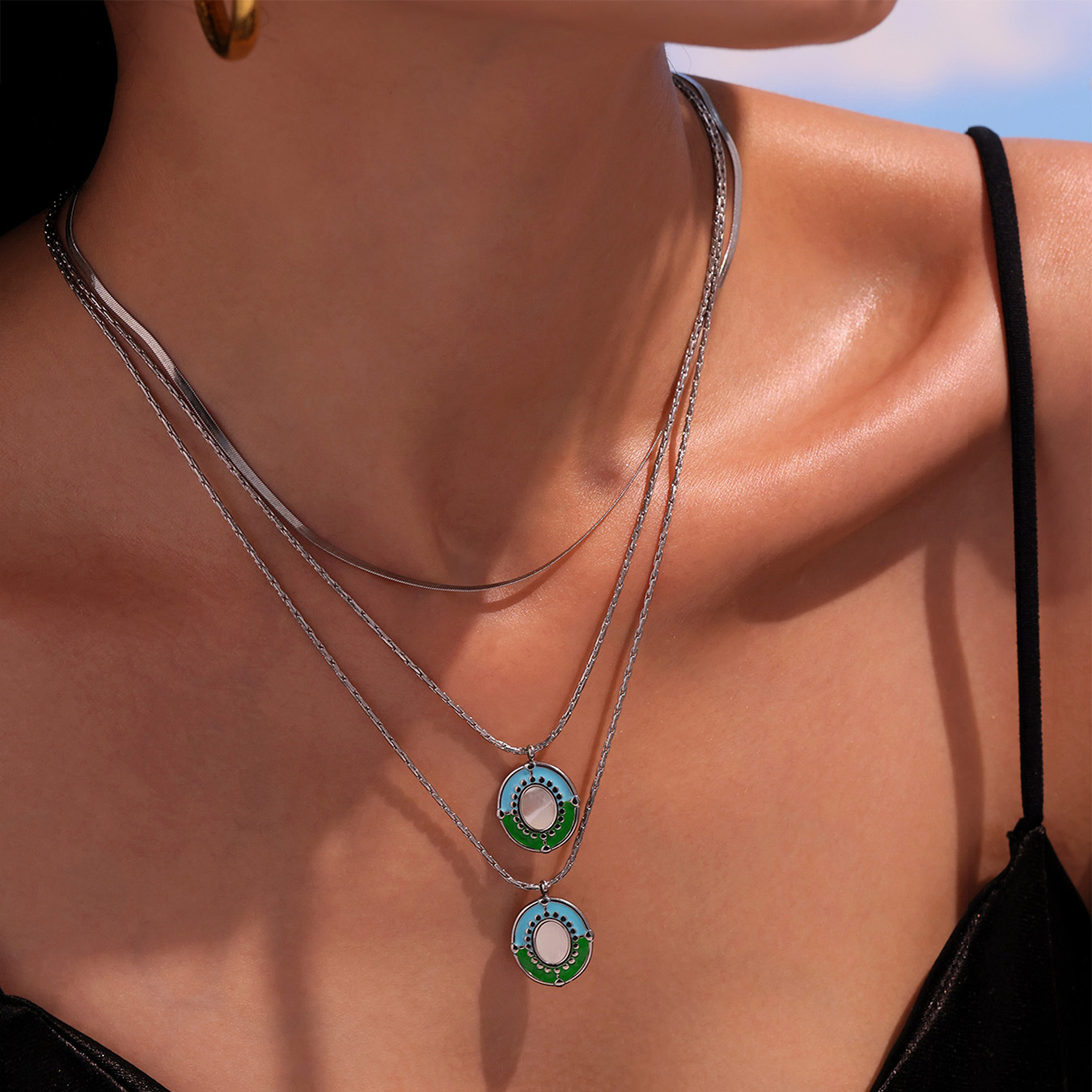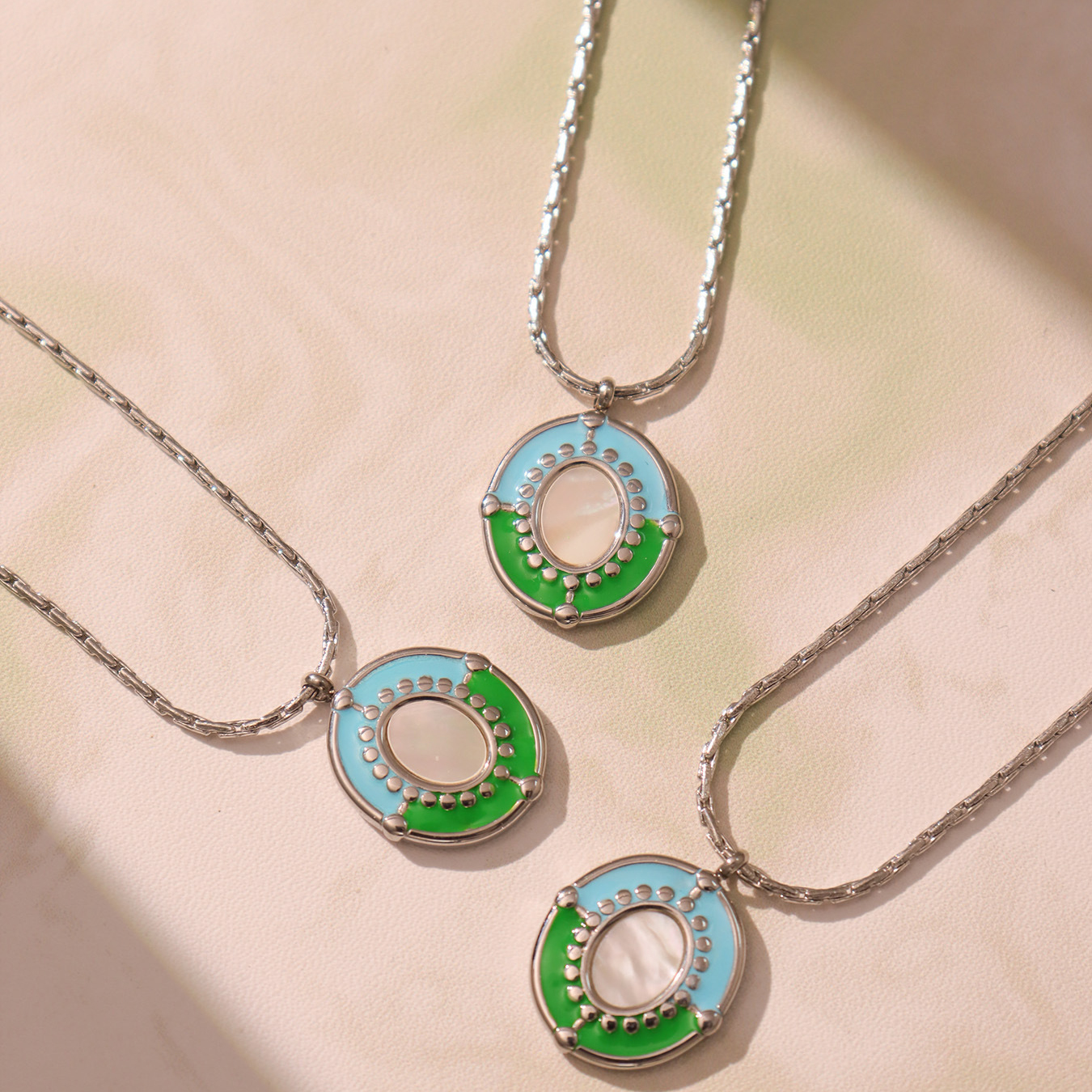 acero inoxidable 304 collar, con Nácar, chapado, Joyería & para mujer & esmalte, color original, Vendido por UD