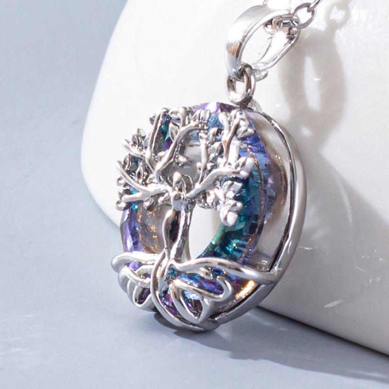 Collar árbol de la vida, metal, con Piedras preciosas, Árbol, chapado en color de plata antigua, diferentes materiales para la opción & cadena de la bola & para mujer, libre de plomo & cadmio, 34x37x5mm, longitud:aproximado 22 Inch, Vendido por Sarta