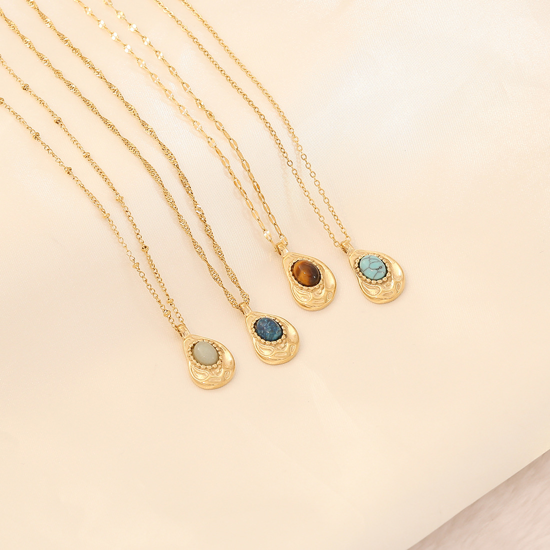 acero inoxidable 304 collar, con Piedra natural, chapado, Joyería & diferentes materiales para la opción & para mujer, dorado, Vendido por UD