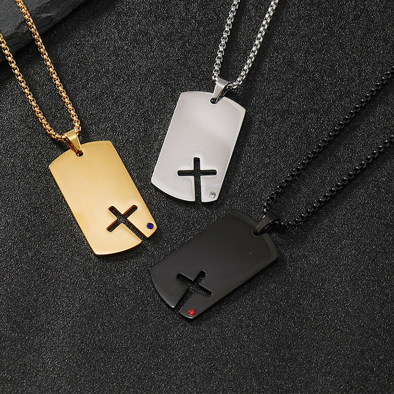 acero inoxidable 304 collar, Cruces, chapado, para hombre & con diamantes de imitación & hueco, más colores para la opción, longitud:aproximado 23.6 Inch, Vendido por UD