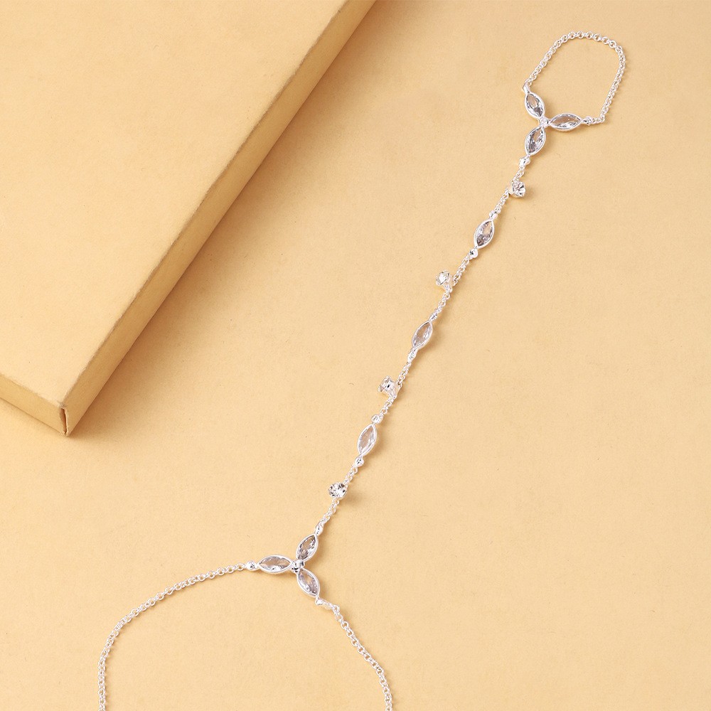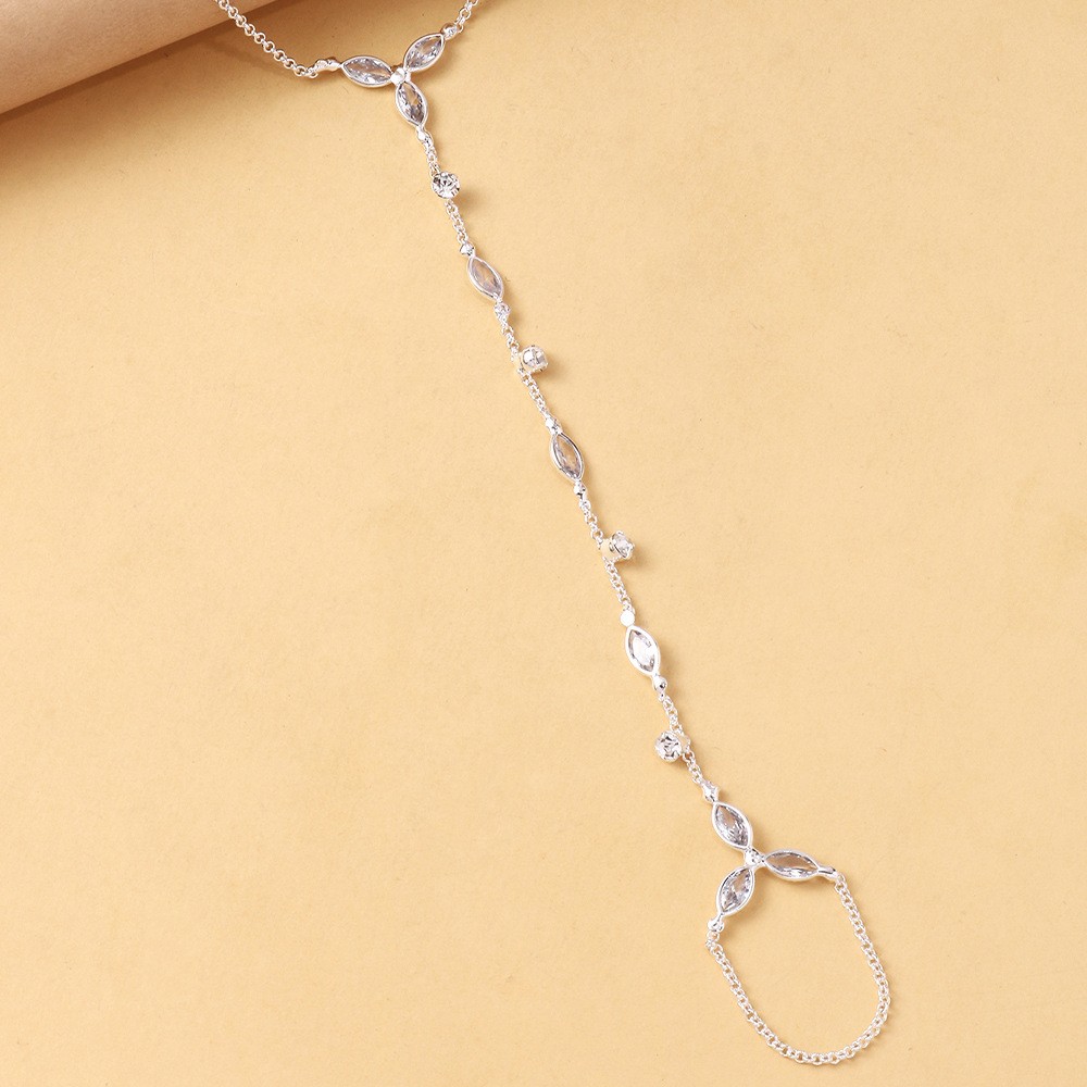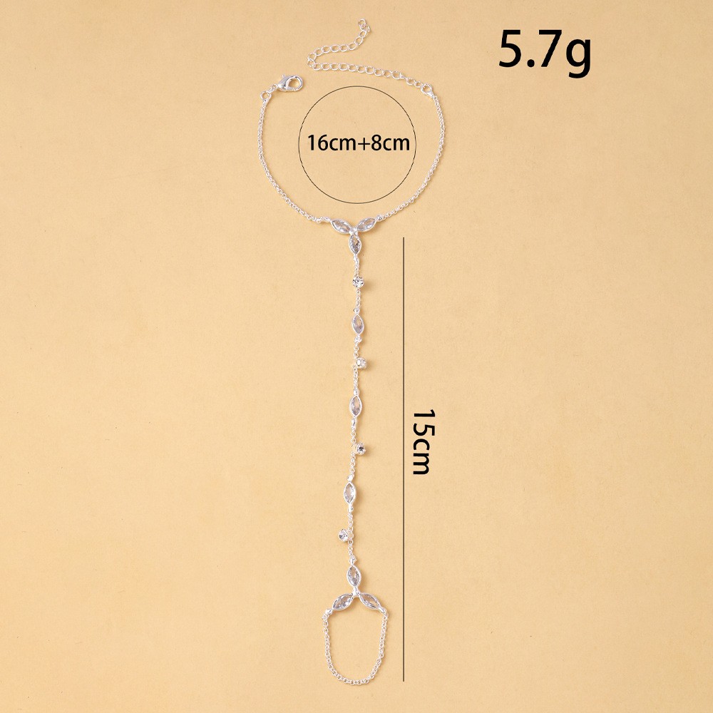 Anillo con Pulsera para Novia, Encaje, con Cinta de satén & Cristal & aleación de zinc, con 1.5Inch extender cadena, Flor, chapado, ajustable & facetas, libre de níquel, plomo & cadmio, 130x28mm, tamaño:4, longitud:aproximado 6 Inch, Vendido por Sarta