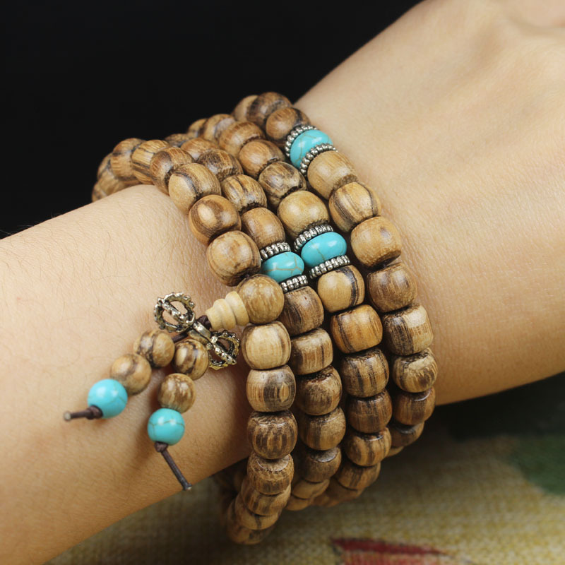 108 Abalorios Mala, Pollo Wingwood, con Cuerda elástica de nylon, Esférico, hecho a mano, La joyería budista & 4-aro, marrón, 8mm, longitud:aproximado 34 Inch, 108PCs/Sarta, Vendido por Sarta