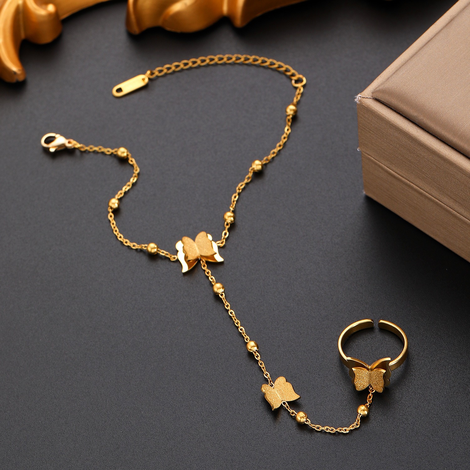 Anillo con Pulsera para Novia, acero inoxidable 304, chapado, Joyería & para mujer & glaseado, dorado, Vendido por UD