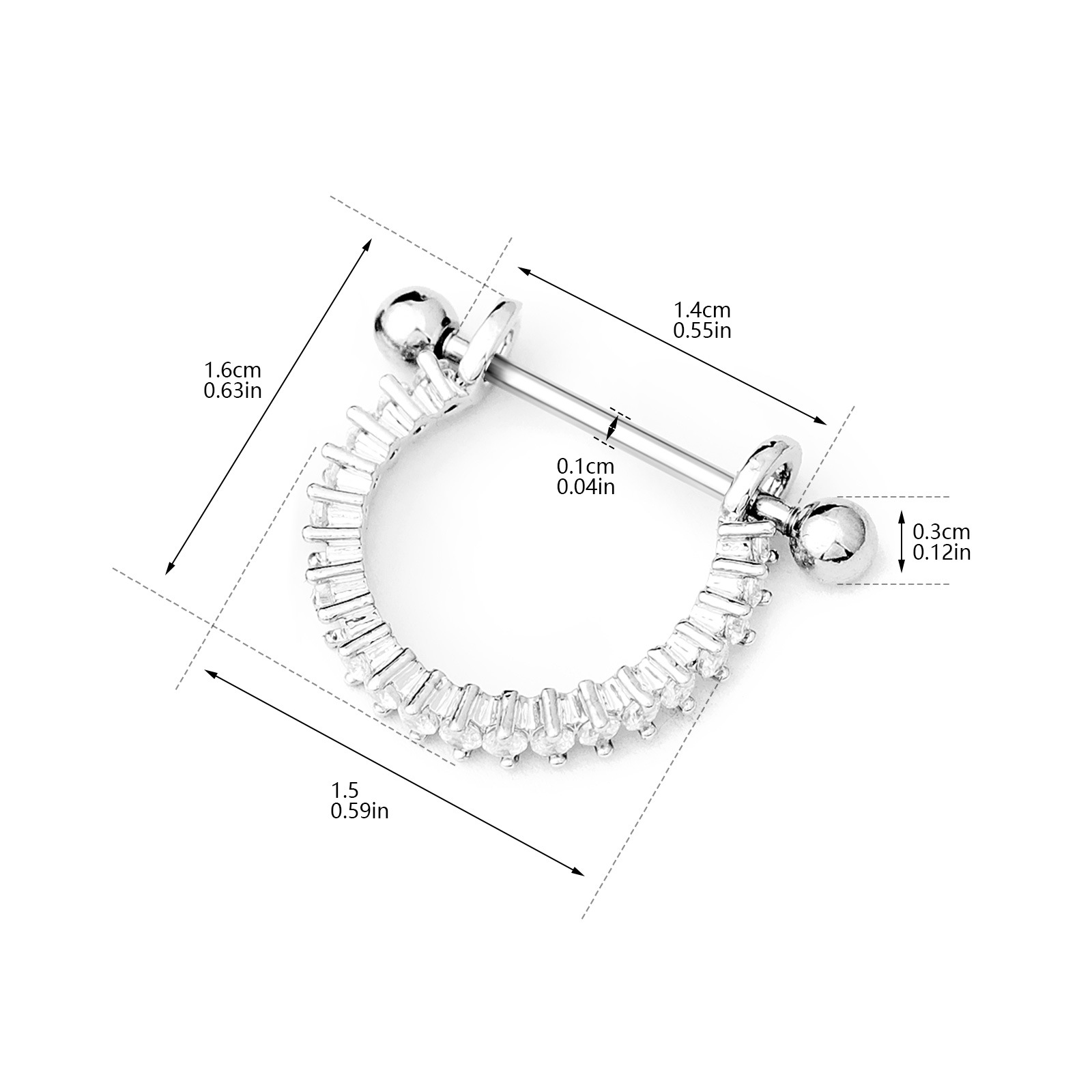 Anillo de acero inoxidable del vientre, con cúbica circonia, para mujer, Vendido por UD