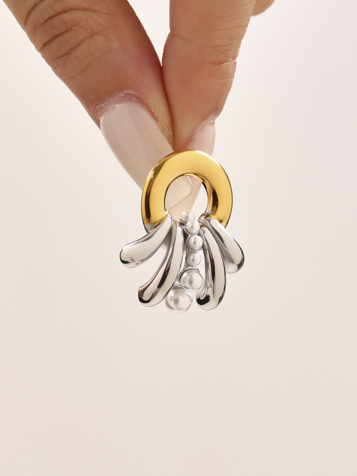 Arete de acero inoxidable , acero inoxidable 304, con Perlas plásticas, chapado en color dorado, Joyería, más colores para la opción, Vendido por Par